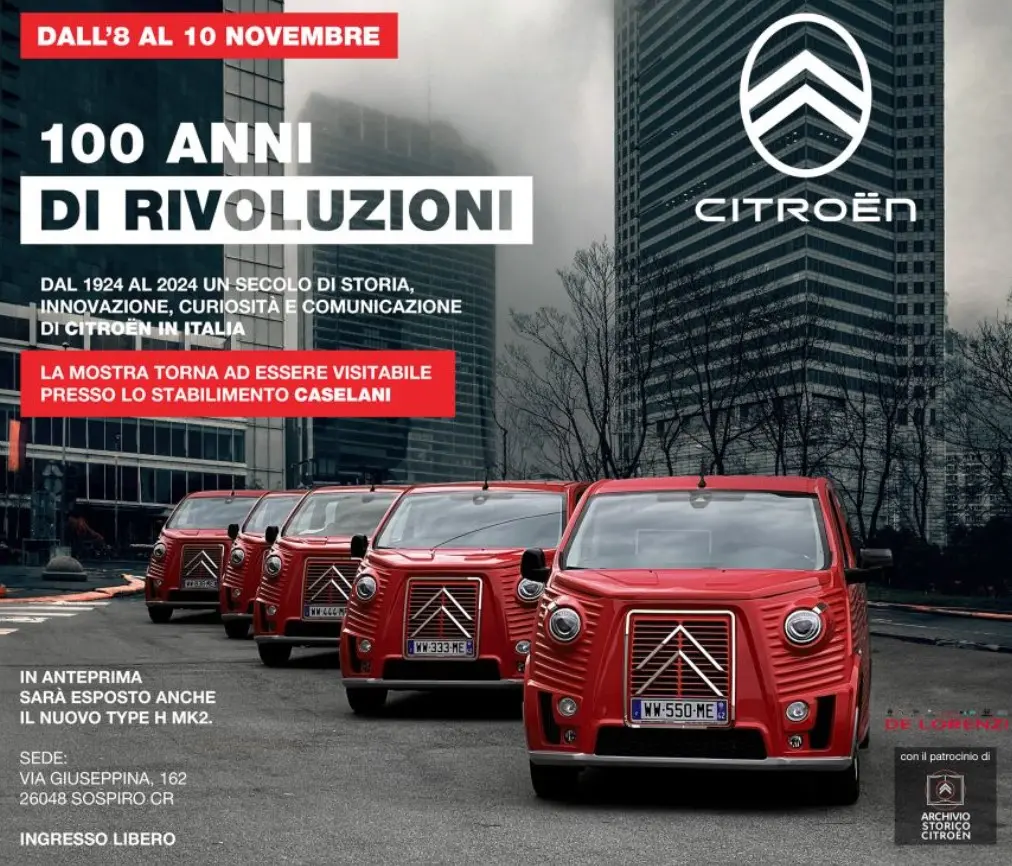 Per rendere omaggio a un secolo di eccellenza, Citroën inaugura la mostra “100 anni di rivoluzioni”, un’esposizione che racconta la straordinaria evoluzione del marchio. Su un’area espositiva di 3.000 metri quadrati, i visitatori potranno ammirare veicoli storici, pannelli illustrativi e materiale d’archivio inedito. La collaborazione con la concessionaria De Lorenzi e i veicoli speciali creati da Caselani aggiunge valore alla mostra, offrendo un perfetto collegamento tra passato e presente, sottolineando il ruolo di Citroën come marchio innovativo e capace di guardare al futuro.