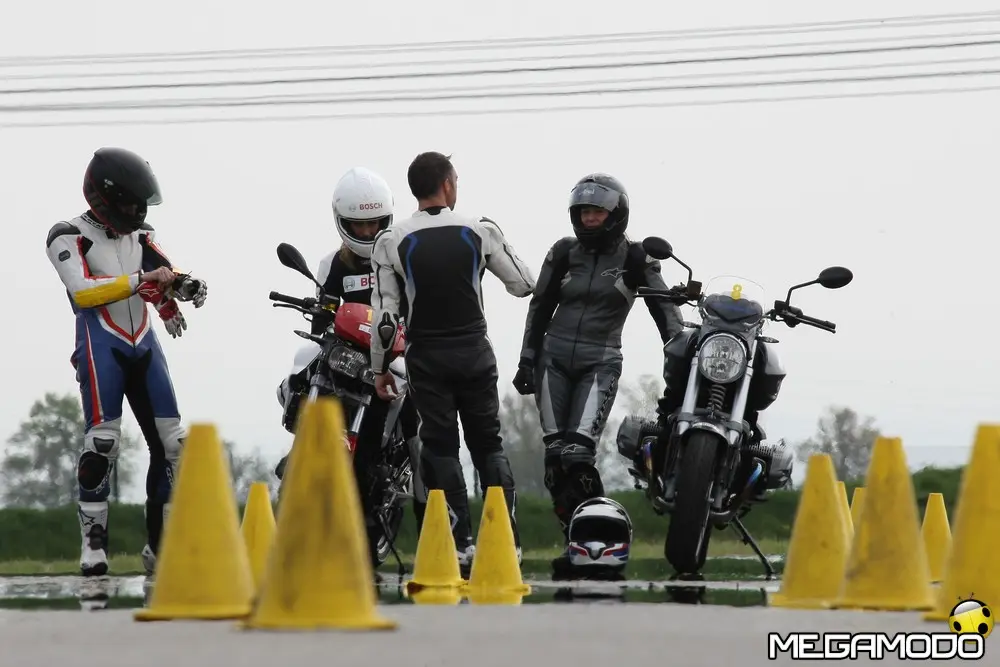 Di seguito i test drive a cui si sono sottoposti: - Frenate a piena potenza su asciutto e bagnato - Distanza di sicurezza e dei tempi di reazione - Controllo della moto e della traiettoria in accelerazione e decelerazione - Posizione del corpo in curva