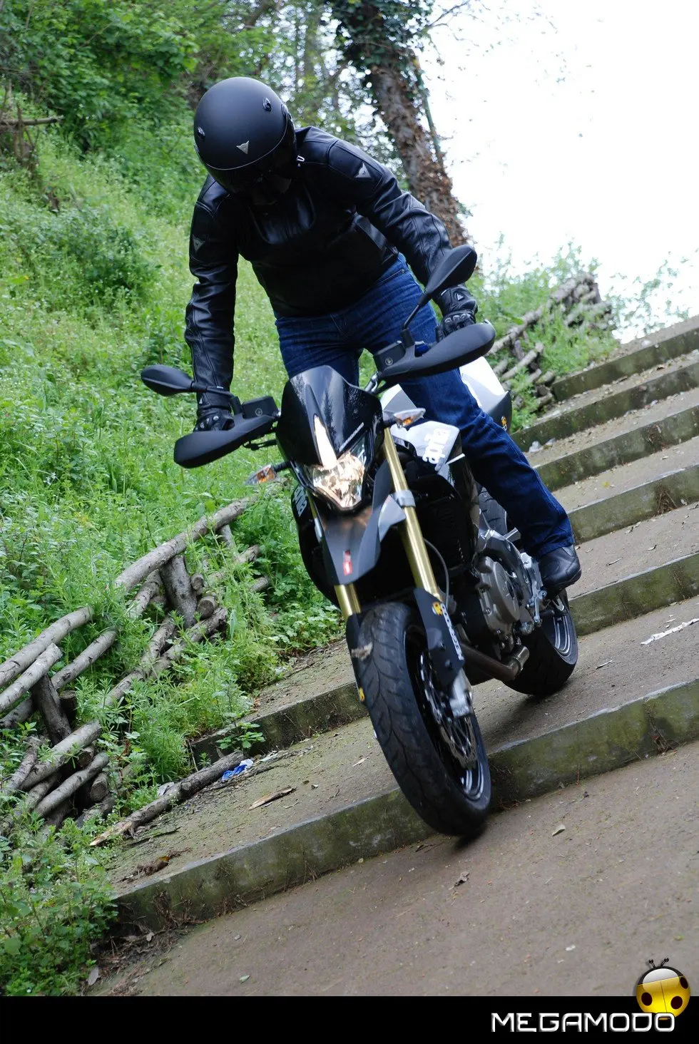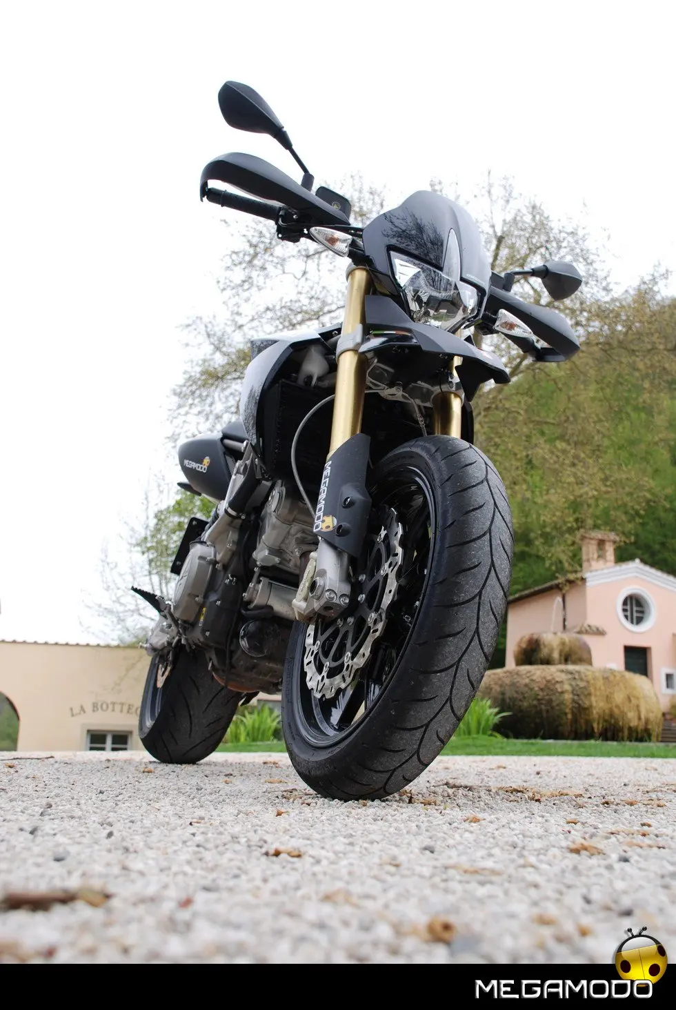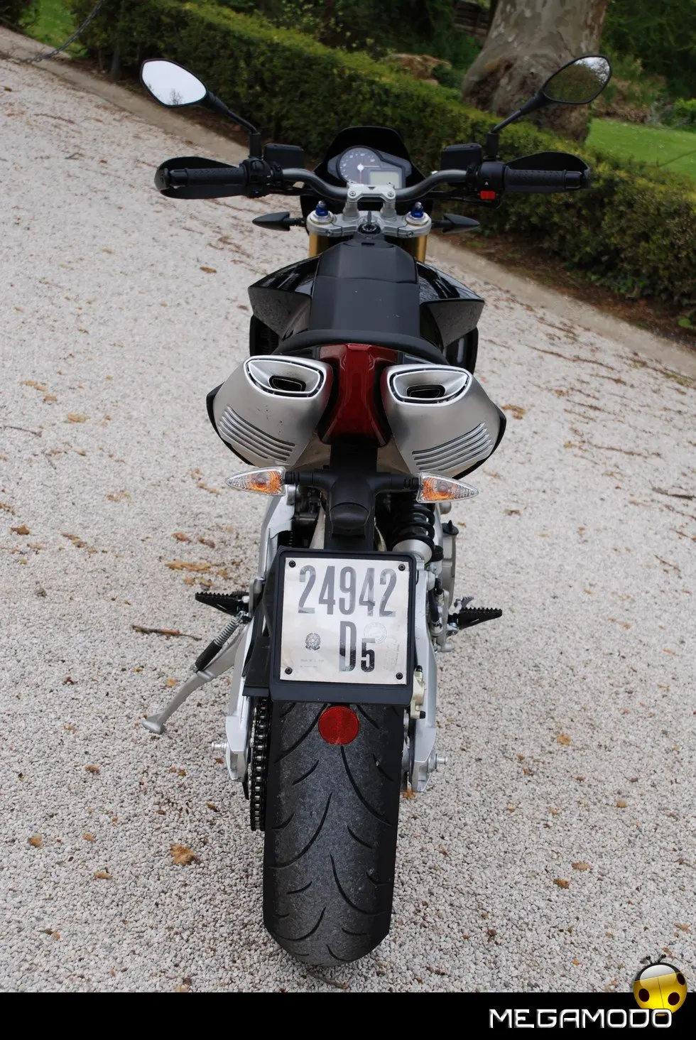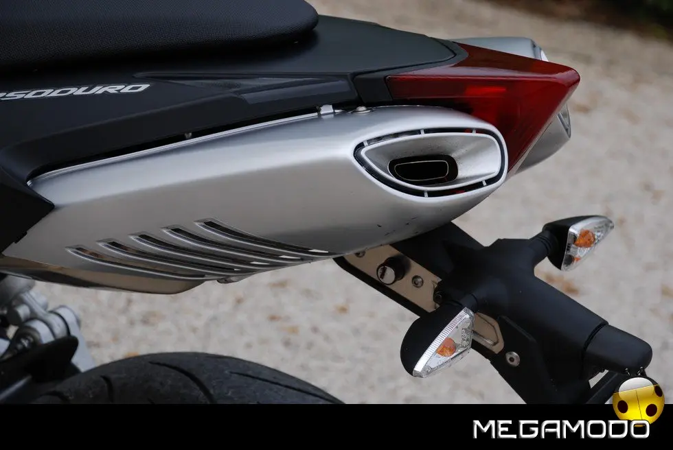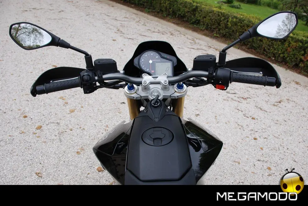 La componentistica nel dettaglio: - Cruscotto Matrix: di tipo misto (analogico/digitale) riceve tutte le informazioni dalla linea CAN ed è parte integrante del sistema di autodiagnosi essendo dotato di memoria storica. Compattissimo, ha un design moderno e un peso estremamente ridotto. Tutte le funzioni sono commutabili e facilmente accessibili tramite un comando sul manubrio. L’illuminazione a led, bianca nella zona analogica e rossa in quella digitale, è regolabile su tre livelli. - Manubrio in alluminio anodizzato biconico: richiama, senza mezzi termini, quelli delle supermoto da competizione. Un componente leggerissimo studiato per avere il massimo del controllo dinamico della moto. - La frizione a comando idraulico: permette uno stacco sempre preciso, una morbidezza del comando esemplare e la comodità di essere autoregistrante, non richiedendo quindi alcuna manutenzione.
