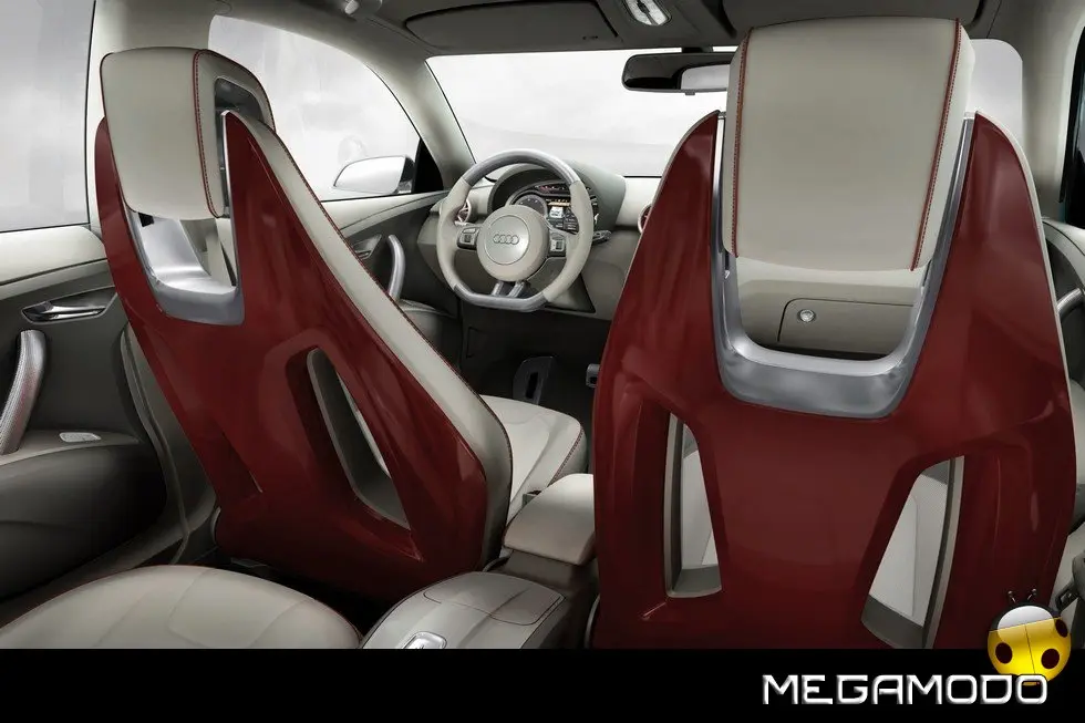I sedili sportivi, con gli appoggiatesta integrati, sono comodi ed ergonomici e di livello superiore allo standard delle supercompatte. Soddisfano appieno le aspettative di chi si accosta a una Audi. Il tessuto trasparente e a struttura reticolare che avvolge i sedili ne mette maggiormente in risalto la leggerezza delle forme.