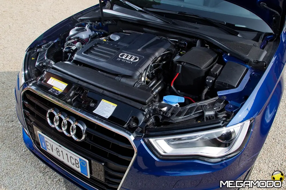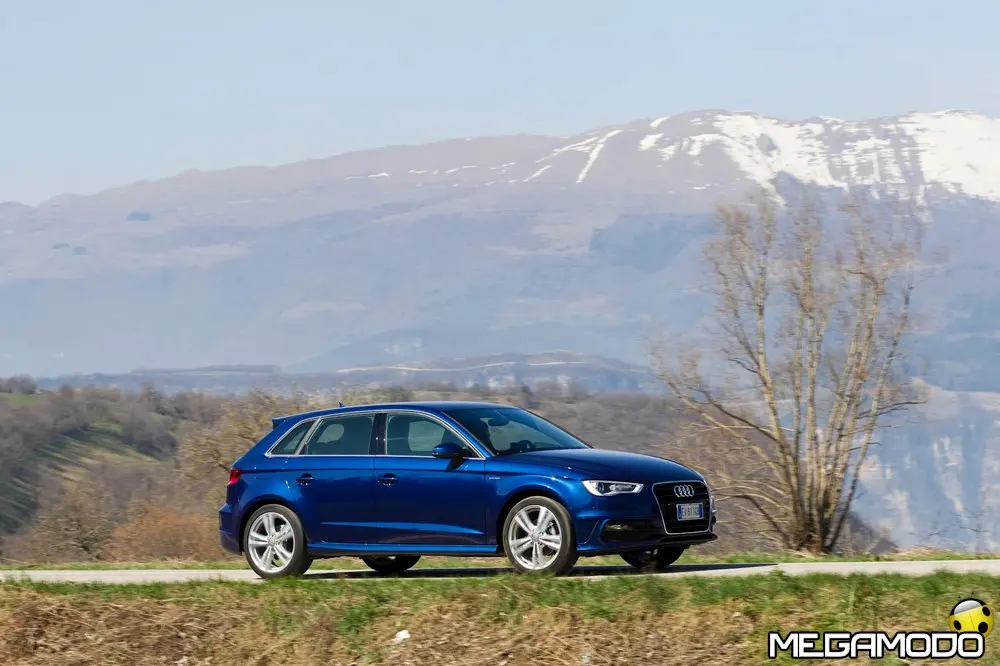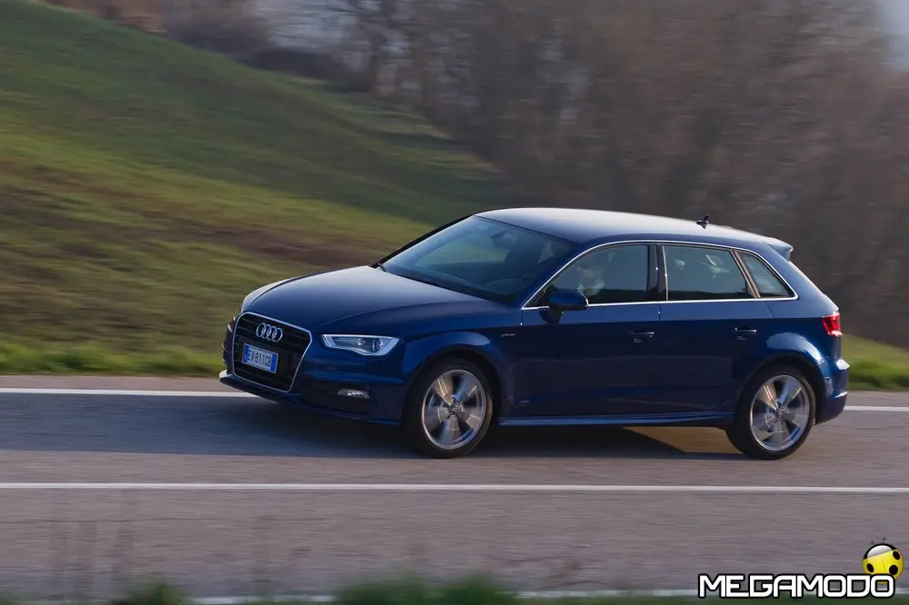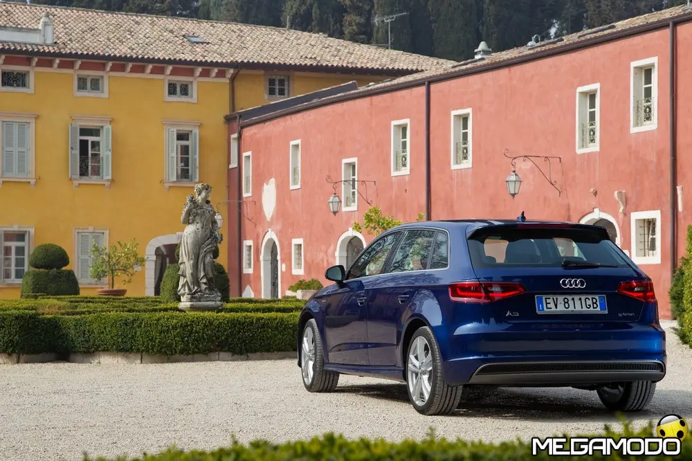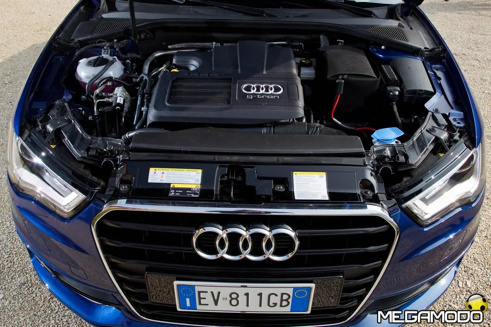 I suoi due serbatoi, alloggiati sotto il pianale del bagagliaio, hanno una capacità massima di sette chilogrammi di gas ciascuno a una pressione massima di 200 bar. Seguendo la logica della costruzione ultraleggera, ogni serbatoio pesa 27 chilogrammi in meno di un serbatoio equivalente tradizionale. I serbatoi hanno una struttura innovativa. Il rivestimento interno è composto da uno strato di poliammide a tenuta di gas; a questo si aggiungono un secondo strato in materiale composito in fibra di carbonio (CFRP), che garantisce la massima resistenza, e un terzo strato in materiale sintetico rinforzato in fibra di vetro (GFRP), che assicura protezione dai danni esterni. Il legante dei materiali fibro-rinforzati è la resina epossidica, anch'essa molto resistente. Una seconda caratteristica peculiare della Audi A3 Sportback g-tron è il regolatore elettronico della pressione del gas. Si tratta di un componente leggero e compatto che riduce l'alta pressione a cui il gas fuoriesce dalle bombole a 5 e 9 bar. In questo modo nel rail del gas e negli iniettori è sempre disponibile la pressione giusta: è bassa ai regimi inferiori e ad andature all'insegna dell'efficienza, mentre aumenta quando il guidatore ha bisogno di maggiore potenza e di più coppia. Non appena la pressione nel serbatoio scende sotto i 10 bar, la gestione motore passa automaticamente alla modalità a benzina. La Audi A3 Sportback g-tron è completamente bivalente: con alimentazione a gas o a benzina le prestazioni sono assolutamente identiche. Con alimentazione a gas l’autonomia è di circa 400 km (consumi medi), cui si aggiungono, se necessario, altri 900 km con alimentazione a benzina; l'autonomia complessiva ha quindi lo stesso ordine di grandezza di un motore Audi TDI. Due display nella strumentazione indicano il livello di riempimento dei serbatoi. Nel sistema d'informazione per il conducente, inoltre, viene visualizzato il consumo momentaneo a seconda della modalità d'esercizio attiva. I due bocchettoni di riempimento si trovano sotto uno sportello comune. Dopo il rifornimento e in caso di temperature esterne molto basse, il motore si alimenta inizialmente a benzina per poi passare il più rapidamente possibile all'alimentazione a gas. Base del propulsore è il nuovo 1.4 TFSI. Sono state apportate alcune modifiche essenziali alla testata, alla sovralimentazione turbo, all'impianto d'iniezione e al catalizzatore. Con una potenza di 110 CV (81 kW) e 200 Nm di coppia la Audi A3 Sportback g-tron raggiunge una velocità massima superiore a 190 km/h e accelera da 0 a 100 km/h in undici secondi. Per percorrere 100 chilometri la cinque porte consuma mediamente meno di 3,6 kg di metano o di e-gas, il carburante che Audi produce nell’e-gas project da fonti di energia rinnovabili. Con alimentazione a gas le emissioni di CO2 allo scarico sono inferiori a 95 g/km. Prezzi La vettura costa 150 euro meno della sorella a benzina e 850 euro meno della A3 Sportback a gasolio. I prezzi partono dai 25.650 euro della A3 Sportback g-tron manuale Attraction (quindi senza MMI) cui vanno aggiunti 2.200 euro tondi per avere il cambio S tronic.