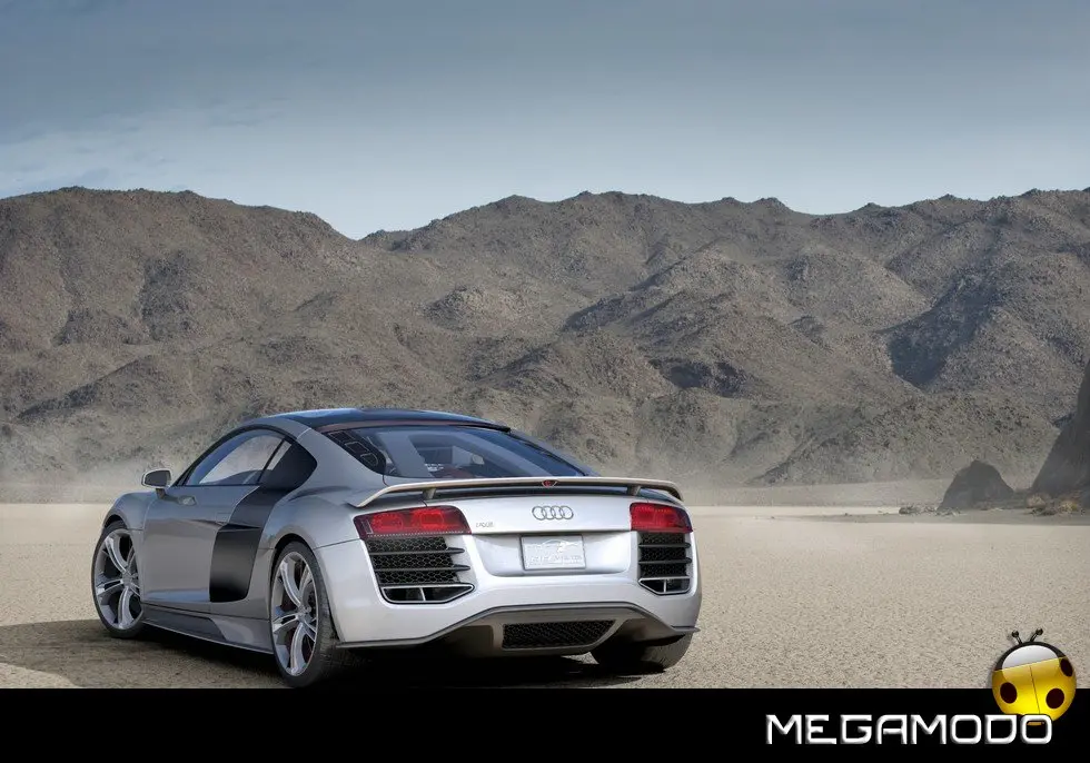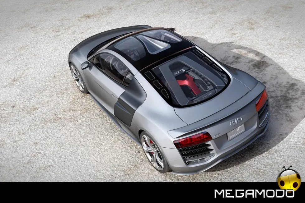 Gli ingegneri addetti all’aerodinamica hanno lavorato con tale intensità alla concept car che la sua carrozzeria oltre a risultare straordinariamente elegante genera anche, contrariamente a quanto accade alla maggior parte delle altre vetture sportive, deportanza. Una circostanza importante, questa, perché la deportanza contribuisce a stabilizzare la vettura alle alte velocità. Tale effetto viene ottenuto grazie a uno spoiler posteriore estraibile molto più grande di quello della R8 di serie ma, soprattutto, attraverso il sottoscocca del diffusore completamente rivestito.