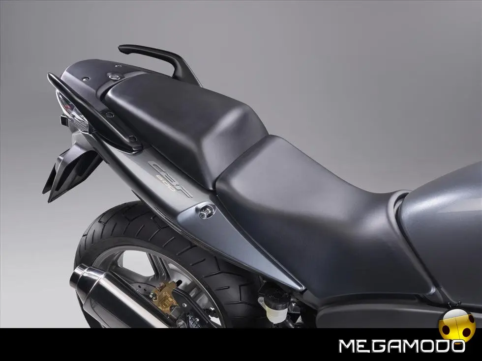 Sella Regolabile in Tre Posizioni La CBF600 mantiene essenzialmente la stessa regolazione della sella in tre posizioni con la quale ha esordito; si può quindi modificare l'assetto in base alla propria altezza ed alle proprie esigenze di guida. Nella posizione più bassa, questa comodissima sella consente ai guidatori meno alti e con minor esperienza di poggiare più facilmente i piedi a terra, e quindi di guidare più rilassati. Per i più alti, la posizione eretta garantisce una guida comoda. Tra le novità, il profilo anteriore più stretto e arrotondato, che migliora il comfort soprattutto per le persone meno premiate da Madre Natura… E’ stato comunque profondamente modificato il dispositivo di fissaggio della sella, con supporti in gomma per ridurre le vibrazioni. Inoltre, su questa nuova versione, il cuscino di seduta dispone di un'imbottitura più comoda, ideale per gli spostamenti a lungo raggio. Sulla parte anteriore è inoltre presente un lembo che chiude lo spazio fra la sella e la parte retrostante del serbatoio, utile soprattutto quando la sella si trova nella posizione più alta.