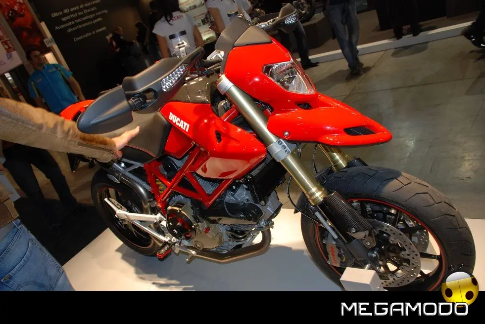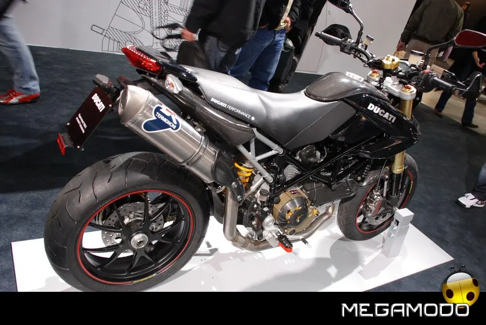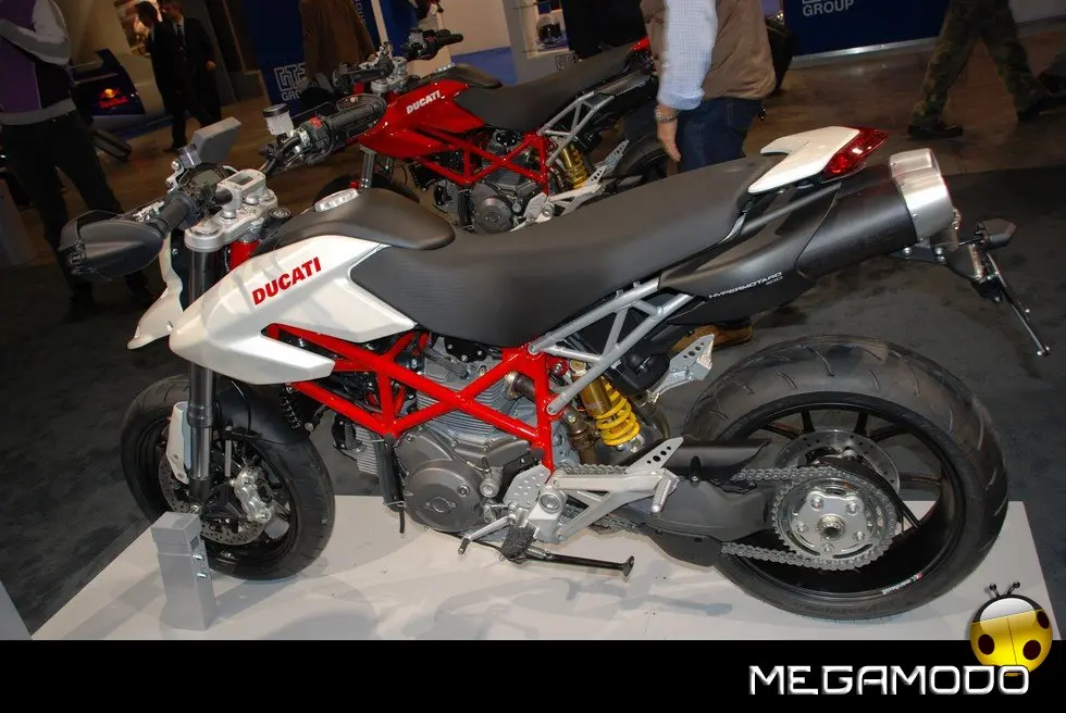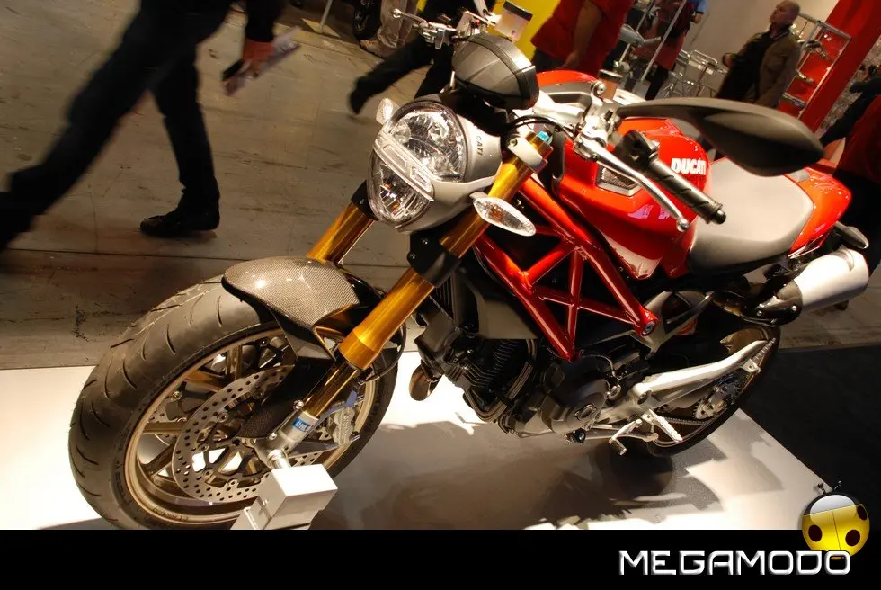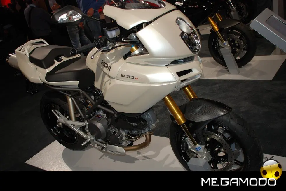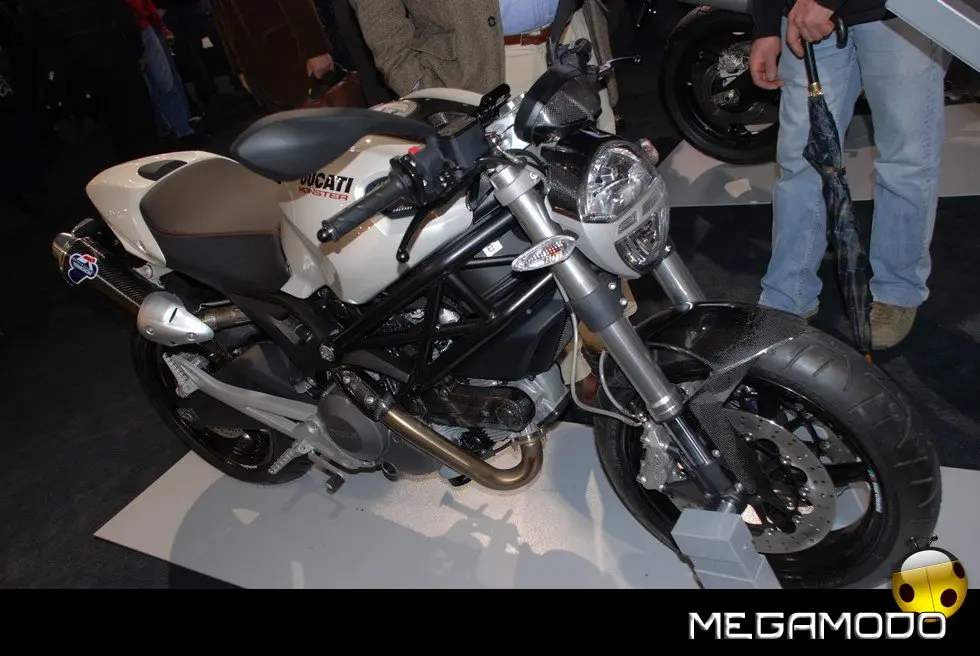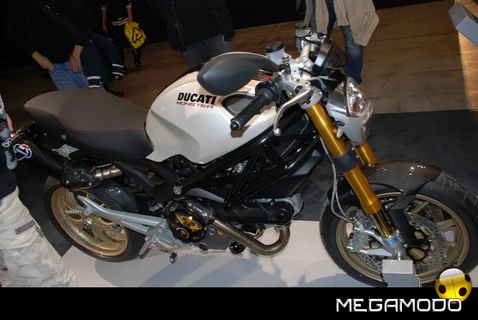 A completare le proposte Ducati per la nuova stagione, il nuovo Monster 1100 e 1100 S, icona dell’eccellenza italiana, frutto del genio e della tecnologia “made in Borgo Panigale”. Dedicato a chi ama il massimo, questo gioiello di stile, sportività e performance è equipaggiato con il carismatico bicilindrico 1100cc Desmodromico a 2 valvole, famoso in tutto il mondo per l’inconfondibile carattere, testimoniato dalla sua coppia e accelerazione. Alle novità della gamma 2009 si aggiungono la nuova colorazione bianco perla per l’Hypermotard 1100 e per la Multistrada 1100 S e la nuova livrea nera con banda bianca della GT 1000, proposta anche in una speciale versione “Touring”. Oltre alle moto, Ducati ha presentato tanti nuovi accessori, parti speciali ed una nuova collezione di capi d’abbigliamento.