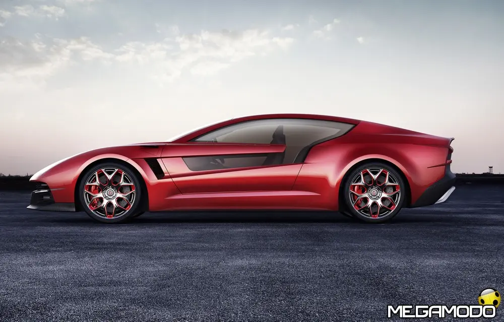 Alluminio, fibra di carbonio e vetro sono i materiali che caratterizzano gli esterni della Brivido. Guardando le sue linee sinuose ed aerodinamiche della carrozzeria, verniciata in rosso perlato xiralico, si nota subito il carattere sportivo e forte della Gran Turismo marchiata Giugiaro. Parabrezza, tetto, lunotto posteriore e le ampie finestrature delle portiere formano una cupola che consente alla luce esterna di illuminare l’abitacolo esaltandone il design ricercato, e i dispositivi ad altissima tecnologia.