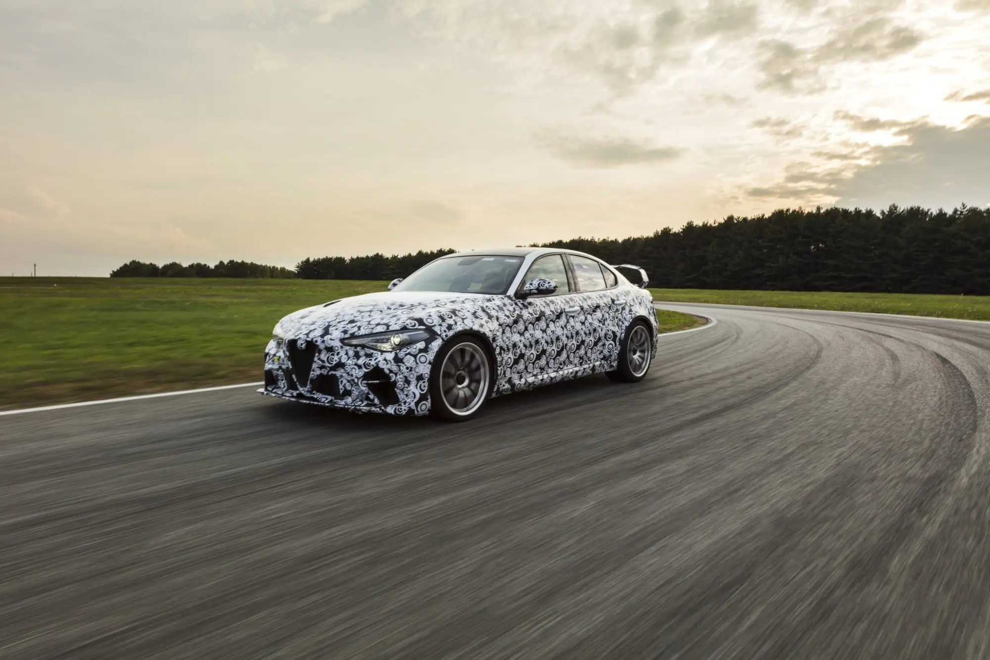 Competenza e passione: questi i principi che hanno animato i due piloti durante la giornata di test sullo storico circuito denominato "Pista Alfa Romeo" che li ha visti protagonisti non sulla monoposto C39, ma sulla berlina sportiva più performante mai prodotta dal brand Italiano. Giovinazzi ha fornito indicazioni sull’assetto della vettura, prestando particolare attenzione anche alle nuove componenti in fibra di carbonio e alla nuova soluzione tecnica adottata per i mozzi monodado, accoppiati in questo caso a cerchi prototipali il cui stile definitivo ricalcherà il 5 fori classico Alfa Romeo, come già visto sulla GTAm concept.