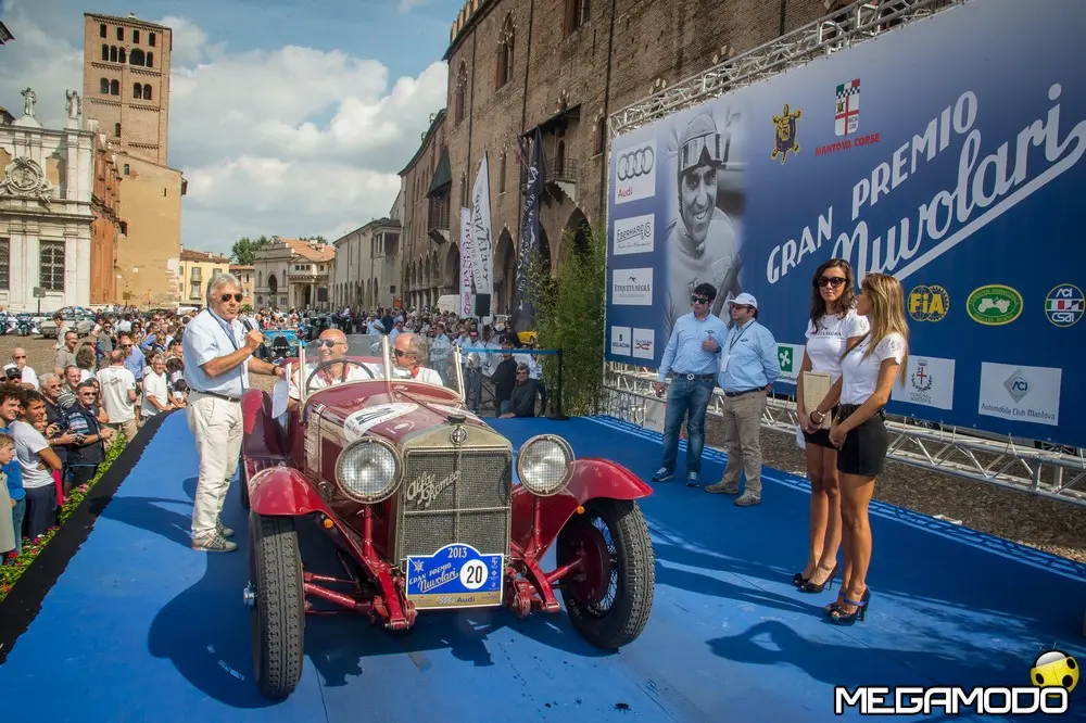 Diversi sono stati i momenti emozionanti di questo Gran Premio 2013: la visita ai due prestigiosi autodromi di Modena “The Green Circuit” e di Imola “Enzo e Dino Ferrari”, il passaggio dal Castello di Panzano a Castelfranco Emilia, proprietà del noto collezionista d’auto e moto d’epoca Mario Righini, e la tappa al Castello di Brolio immerso nell’incantevole campagna toscana; la cena di gala nello storico Grand Hotel di Rimini; il passaggio per Piazza del Campo, a Siena e, naturalmente, la proclamazione del vincitore Andrea Vesco e del suo navigatore Andrea Guerini, al Teatro Bibiena di Mantova, in un’atmosfera solenne ed evocativa. Anche quest’anno il Gran Premio Nuvolari si è confermato come la manifestazione storica che coinvolge gli appassionati da tutto il mondo in nome della sana competizione, in un connubio tra sport, cultura e turismo, grazie anche alla bellezza dei paesaggi che hanno fatto da sfondo a una delle più importanti realtà sportive dell’automobilismo d’epoca nel mondo.