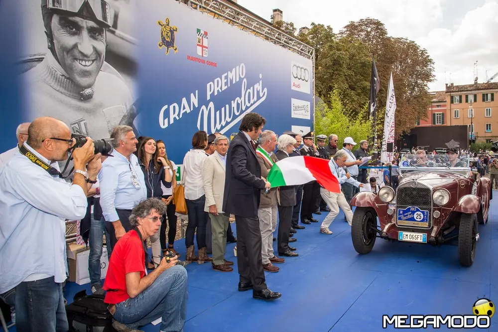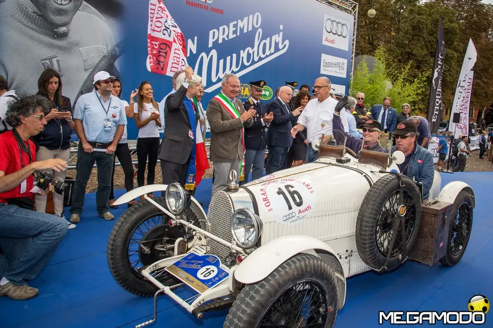 i è conclusa lo scorso 22 settembre la 27^ edizione del Gran Premio Nuvolari: vincitore - per il secondo anno consecutivo – l’equipaggio Andrea Vesco – Andrea Guerini, alla guida di una Fiat 508 S Balilla Sport del 1934, seguito da Fabio Salvinelli e Maurizio De Marco (Alfa Romeo 6C 1500 Super Sport del 1928) e, al terzo posto, dall'equipaggio composto da Pier Luigi Fortin e Laura Pilé su MG TA del 1936. "Worldwide welcome!": il saluto di Claudio Rossi, della Scuderia Mantova Corse, bene riassume lo spirito del 27° Gran Premio Nuvolari, rendendo onore alla consistente presenza di equipaggi provenienti da tutto il mondo. I tre organizzatori Claudio Rossi, Luca Bergamaschi e Marco Marani hanno presentato la cerimonia di chiusura del Gran Premio, che si è svolta al Teatro Bibiena di Mantova.