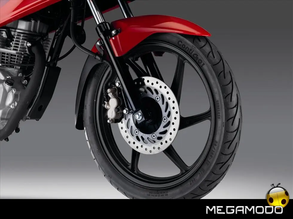Frenata sicura La semplicità di guida della CBF125 è proverbiale, e l’azione frenante non fa eccezione. La ruota anteriore è abbinata ad un freno a disco da 240 mm con pinza a due pistoncini. Potente e di peso contenuto, l’impianto si adatta tanto alla guida urbana quanto alle strade più veloci. La frenata è ottimamente bilanciata dall’affidabile freno posteriore a tamburo da 130 mm, al fine di privilegiare maneggevolezza e controllo in ogni situazione.