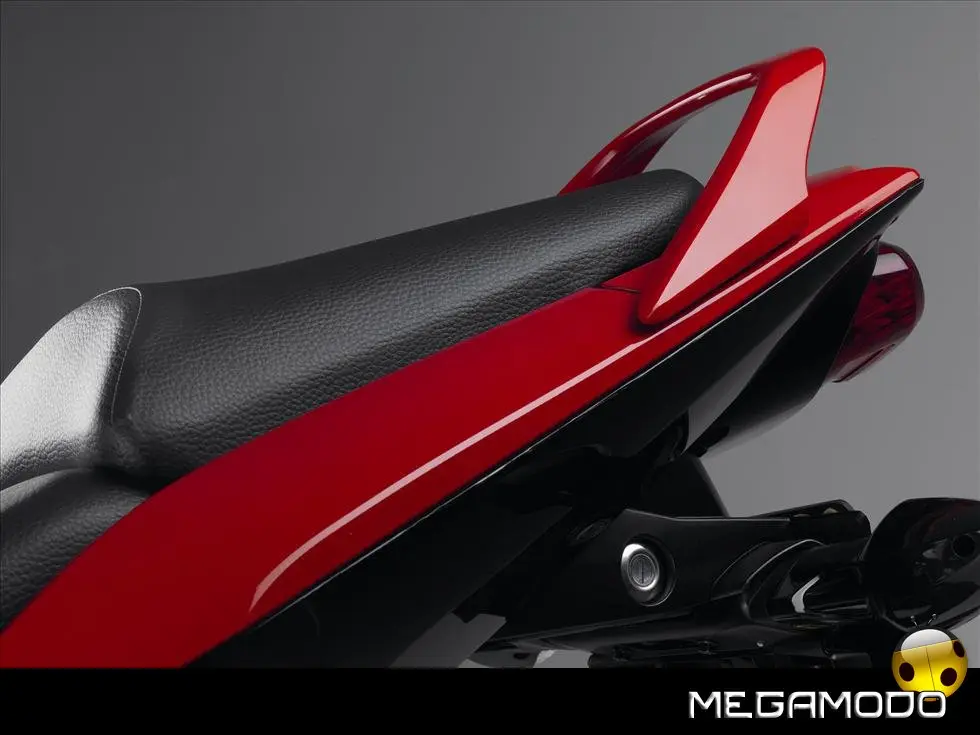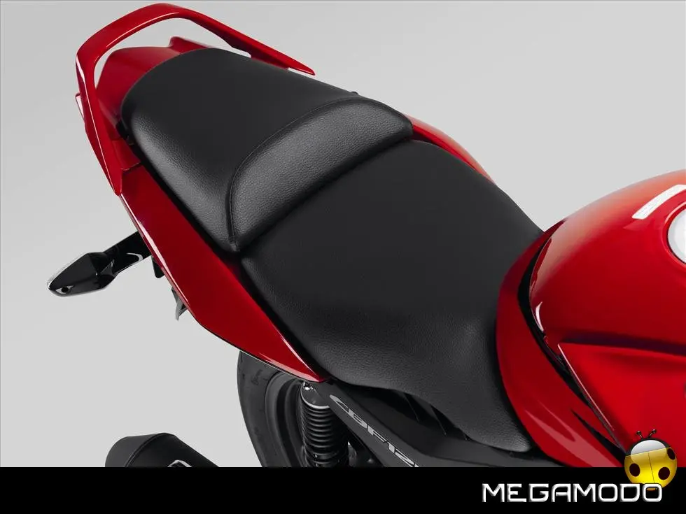 Scelta cromatica La CBF125 si presenta in città in tre colorazioni che mettono in risalto l’eredità naked, l’eleganza ed il particolare design che la distingue. La prima è un rosso fresco e vibrante che esprime tutto il carattere dinamico e le tendenze sportive di questa 125cc. L’esemplare “tutto nero” evidenzia con classe il sontuoso profilo compatto e ben disegnato. Invece, la brillante versione color argento metallizzato sottolinea l’aspetto classico della nuova CBF. Su ogni modello si può apprezzare il contrasto fornito dall’ala stilizzata Honda – che si protende fino al serbatoio.