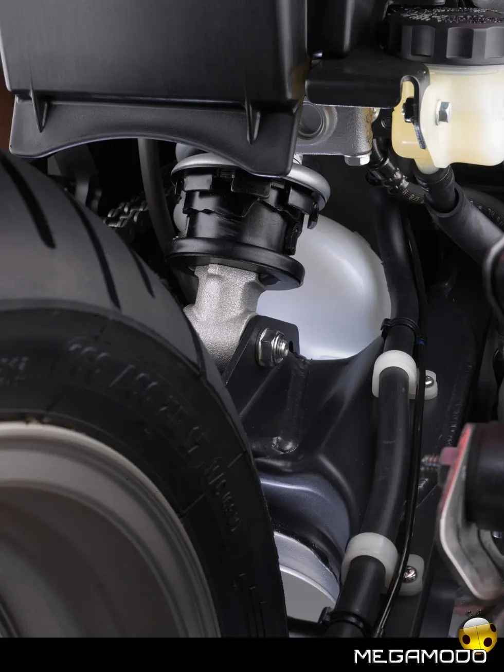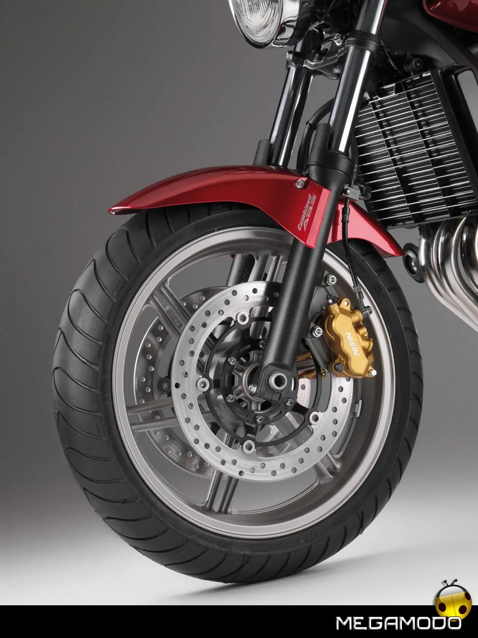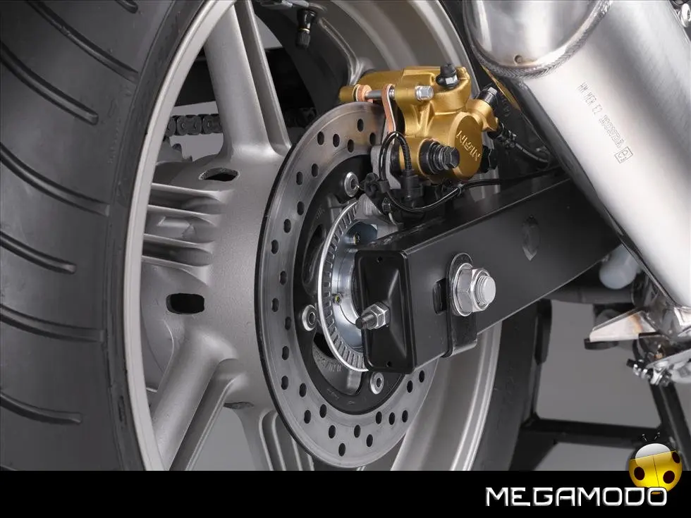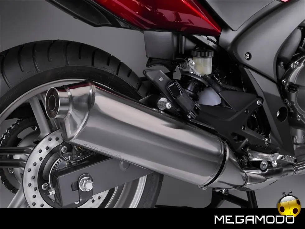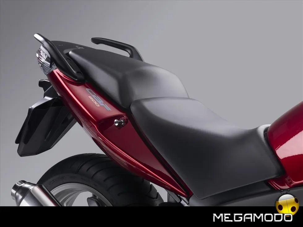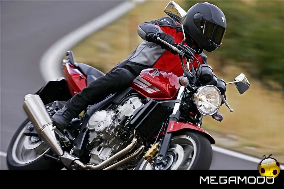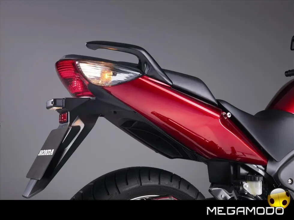 Nuovo Telaio Monotrave in Alluminio L'innovativo telaio monotrave in alluminio, realizzato con l’esclusivo procedimento della fusione gravitazionale, richiama quello già adottato sulla Hornet 600 del 2007. Le tre sezioni pressofuse (trave anteriore con cannotto di sterzo, trave dorsale ed area del perno del forcellone) sono ottimamente saldate, il che comporta una notevole riduzione del peso complessivo. Incastonato in questa semplice struttura, il motore funge da elemento stressato nella classica configurazione romboidale. L’ultraleggero telaio in alluminio migliora di molto la robustezza e la rigidità, garantendo una maggior precisione di guida ed una più spiccata reattività nei cambi di direzione. Robusto anche il telaietto sottosella –in acciaio con sezione a scatola - che può sopportare anche l’adozione delle borse rigide e del bauletto. Per una maggior comodità di guida, sui poggiapiedi sono stati installati dei contrappesi che di fatto eliminano ogni vibrazione. Il nuovo perno del cavalletto centrale e l’astina di richiamo più lunga agevolano il parcheggio della moto.