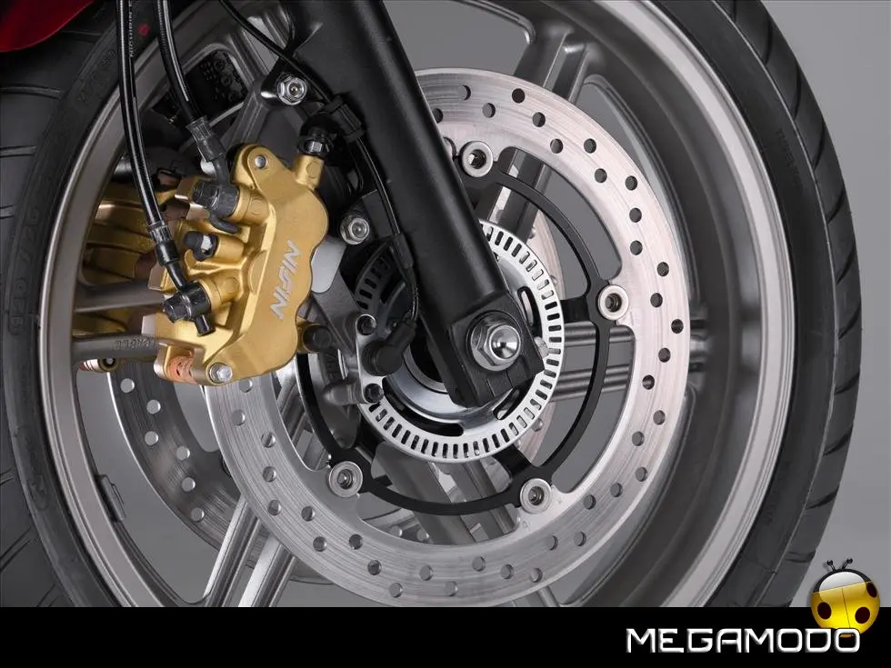 Versione CBS-ABS ad Alte Prestazioni La nuova CBF600S è disponibile anche in una configurazione con CBS-ABS che unisce il collaudato sistema di frenata combinata alla garanzia dell'ABS. Esteticamente, sono le pinze a fare l'unica, vera differenza fra la versione standard e quella con CBS-ABS. Infatti, in quest’ultimo caso, al posto delle pinze a due pistoncini ad agire sui dischi flottanti vi è un set di pinze color oro a tre pistoncini. Sul lato destro di ogni ruota è installato anche un piccolo anello a impulsi (ruota fonica), costantemente monitorato dalla centralina dell’ABS, che funziona esattamente come quello installato sugli altri modelli della Casa. Ovvero, in caso di frenata su superfici stradali irregolari o scivolose, il dispositivo reagisce immediatamente ad ogni minima variazione di velocità relativa alle due ruote, e quindi anticipa e previene lo slittamento dello pneumatico. Grazie alla precisione della centralina elettronica, viene mantenuta sempre la più corretta pressione frenante per ottenere una decelerazione morbida e costante; e ciò aumenta la sensazione di poter frenare rapidamente ed in tutta sicurezza. Il CBS (Frenata Combinata) di questa versione collega il pedale del freno posteriore al pistoncino centrale della pinza destra (anteriore) a tre pistoncini, per garantire una ripartizione calcolata di frenata sull’anteriore quando si usa il solo freno posteriore. Una valvola ritardante in linea garantisce che una leggera azione del pilota sul freno posteriore, per esempio in fase di inserimento in curva, non abbia virtualmente alcun effetto sul freno anteriore. Un’azione energica sul pedale del freno genera invece un’azione sul freno anteriore sufficiente a garantire una ripartizione della forza frenante fra l’area anteriore e quella posteriore, per un’azione molto ben controllata. I cinque rimanenti pistoncini delle pinze anteriori, azionati dalla leva di destra, operano in modo convenzionale, garantendo un controllo ottimale che consente di sfruttare in pieno la potenza dell’impianto frenante della CBF600 in tutta sicurezza. La guida sicura necessita sempre di un impianto frenante ad alte prestazioni, e l’avanzato CBS-ABS della CBF600 garantisce performances che trasmettono grande sicurezza e feeling a piloti di ogni livello ed esperienza; e questo in ogni situazione in cui è essenziale disporre di una capacità frenante ottimale.
