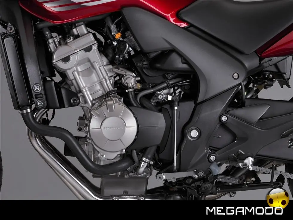 Propulsore più Leggero e Compatto Il nuovo motore che equipaggia la CBF600 è uno dei più corti e compatti della categoria. La maggior coppia ai regimi medio-bassi assicura prestazioni ottimali lungo tutta la curva d’erogazione, una fantastica ripresa e tanta brillantezza per una guida dinamica e agevole in curva. Grazie alla coppia più abbondante, anche la partenza da fermo diventa più facile: basta lasciare la frizione anche senza accelerare e ci si muove senza problemi. Un rombo di scarico più “pieno” e profondo ne accentua inoltre la sensazione di potenza. Oltre a offrire prestazioni elevatissime ed un miglior rapporto peso/potenza, il nuovo motore contribuisce all'equilibrio ottimale della massa rendendo la moto più docile e maneggevole, per un piacere di guida senza fine.