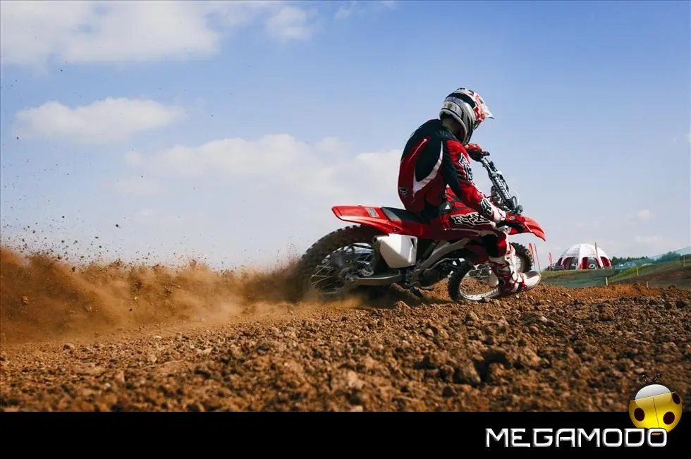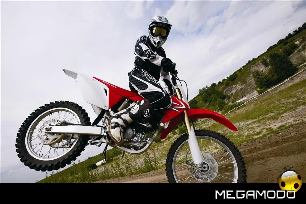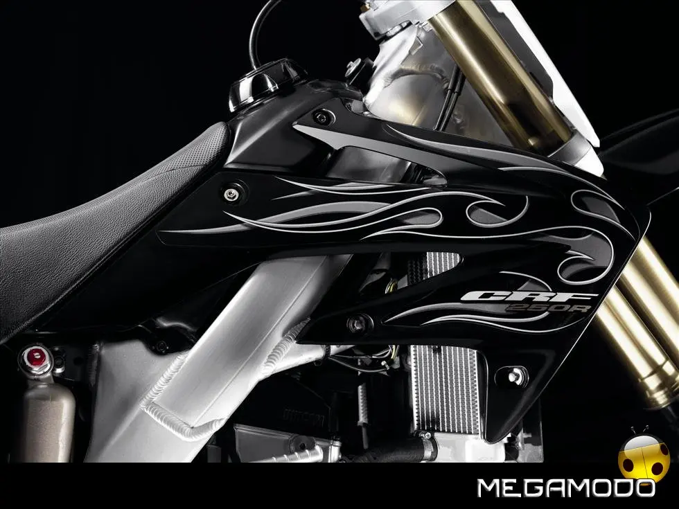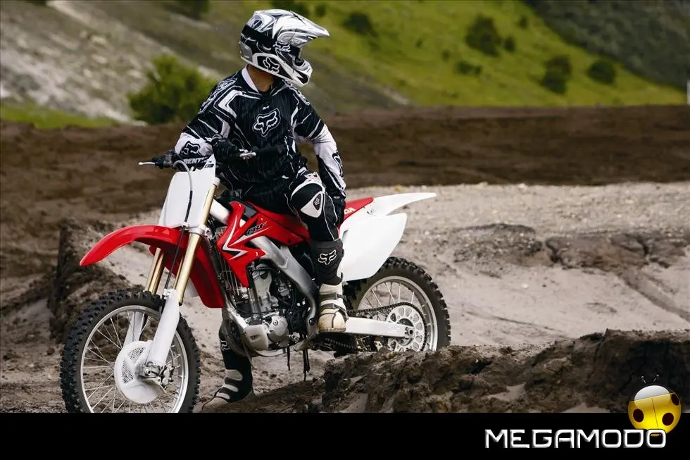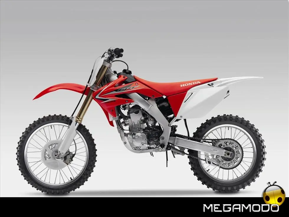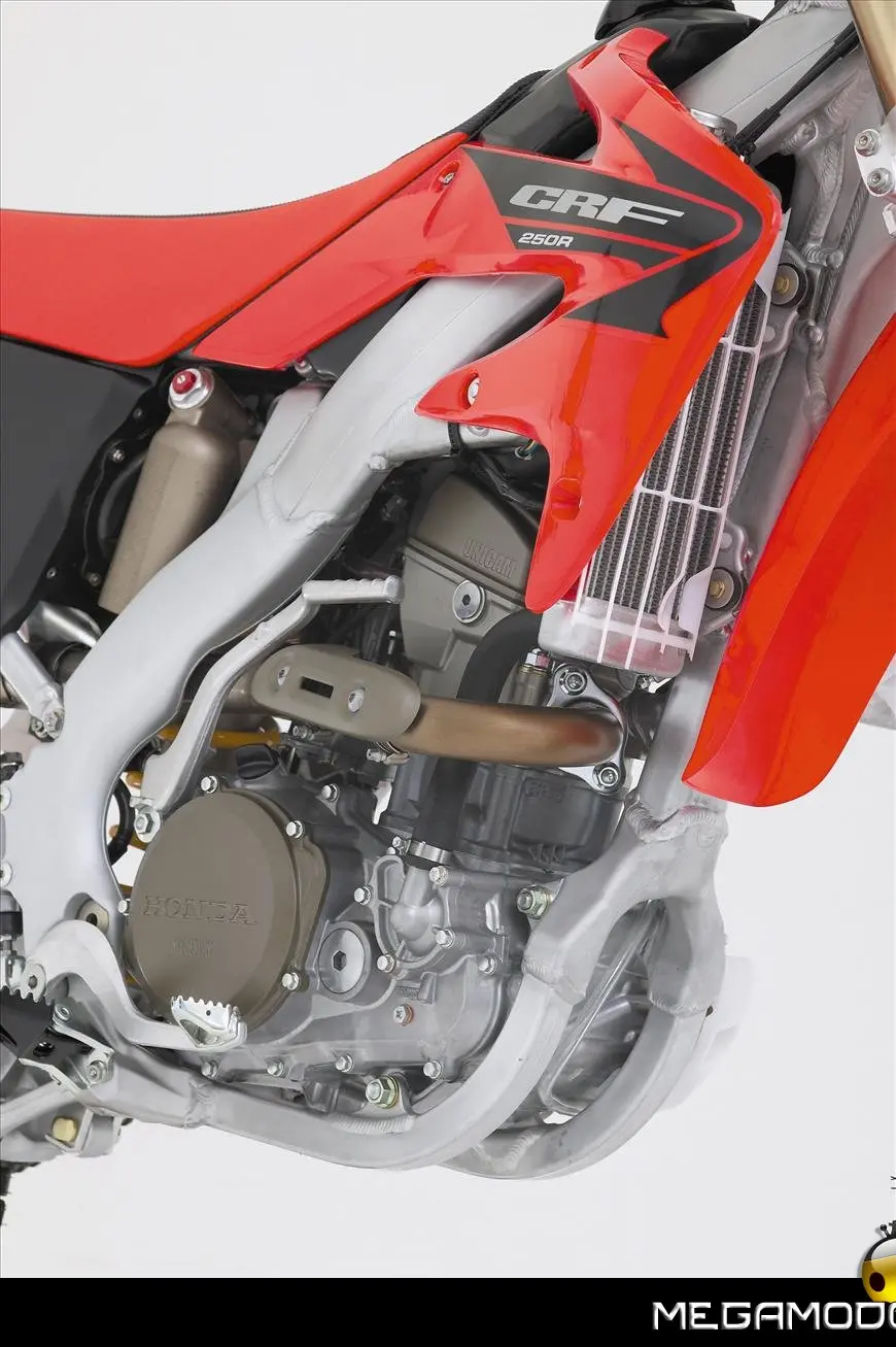 Una moto vincente, che segue le orme della CRF450R, la… “sorella maggiore”. La CRF250R é una delle grandi protagoniste del Supercross e del Mondiale Motocross. Beneficia direttamente della tecnologia e della componentistica della… sorellona, con un potente motore a 4 tempi rapido a salire di giri, e lo scarico con doppio terminale - unico nella categoria. Quest’anno la CRF250R è pronta a schierarsi al cancello forte di un peso ridotto (intorno ai 100Kg), un’erogazione addolcita, un nuovo e filante styling ed una maneggevolezza ancor migliorata. L’impressionante vigore del propulsore con distribuzione Unicam è stato addolcito aumentando la coppia ai medio-bassi regimi e agevolando i cambi di marcia – ora meno faticosi. Il telaio è stato modificato per renderlo più efficace nei tratti veloci e nei salti. La taratura delle sospensioni è stata rivista, così come i settaggi interni dell’ammortizzatore di sterzo, per garantire un superbo controllo del mezzo e sfruttare una miglior trazione anche nei tracciati sabbiosi più impegnativi e sulle superfici più impervie.