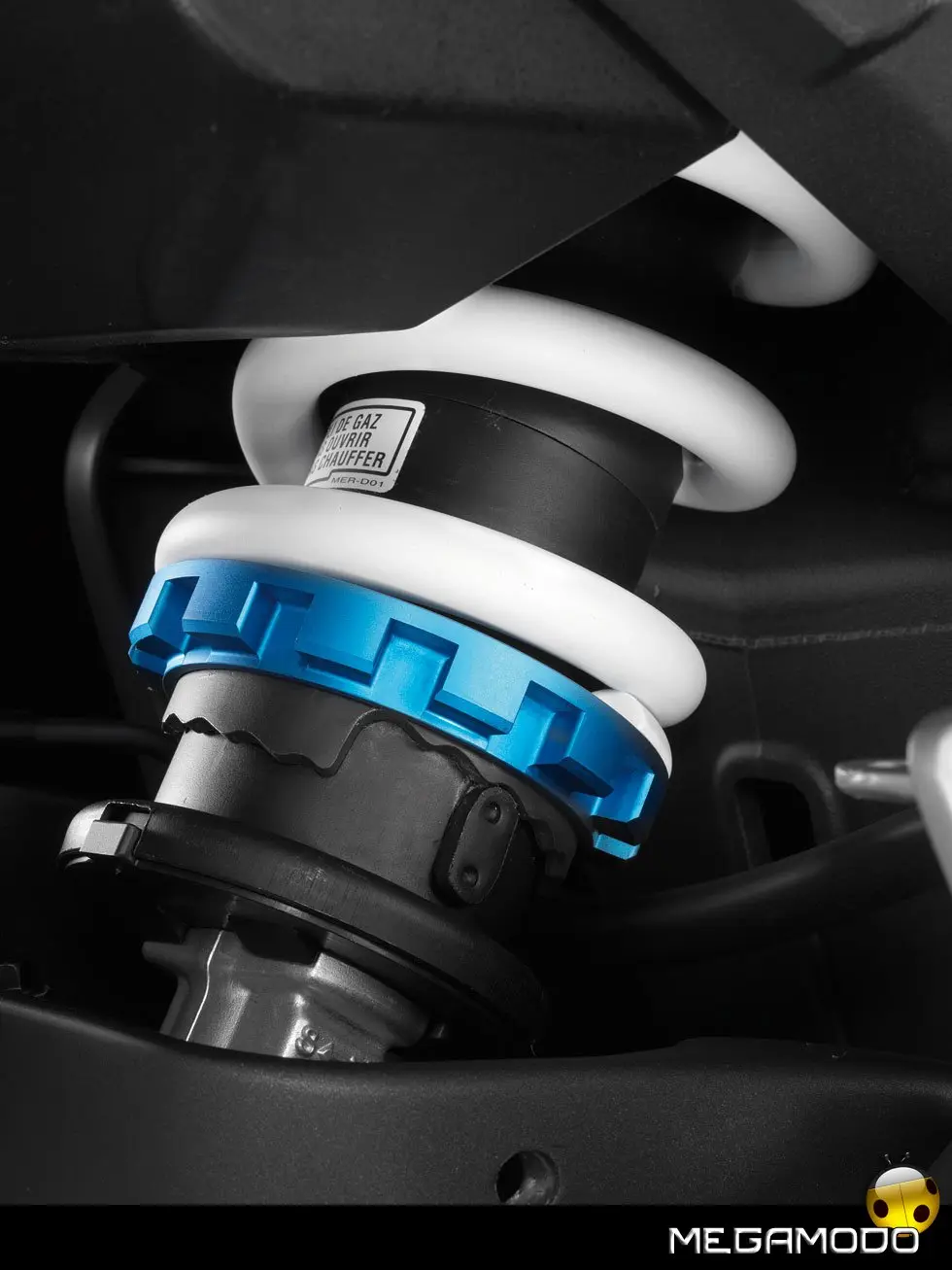 Sistemi delle Sospensioni da Vera Sport Bike Come la sua stretta parente Super Sport, la Fireblade, anche la CB1000R è supportata all'anteriore da una robusta ed elastica forcella rovesciata HMAS a cartuccia da 43 mm che assicura una manovrabilità unica nelle curve più strette e in caso di grandi difformità del manto stradale, per un controllo al pari di quello delle rivali più orientate alle grandi prestazioni. Oltre a ben 120 mm di progressiva escursione ammortizzata, gli steli della forcella consentono la regolazione completa del precarico, della compressione e del ritorno, a garanzia di un controllo sempre ottimale in ogni condizione. Al posteriore, il monoammortizzatore regolabile con serbatoio separato che si trova fra il maestoso forcellone monobraccio Pro-Arm in alluminio e la parte posteriore del telaio, fornisce 120 mm di fluida escursione per un bilanciamento ottimale e un comfort assoluto.