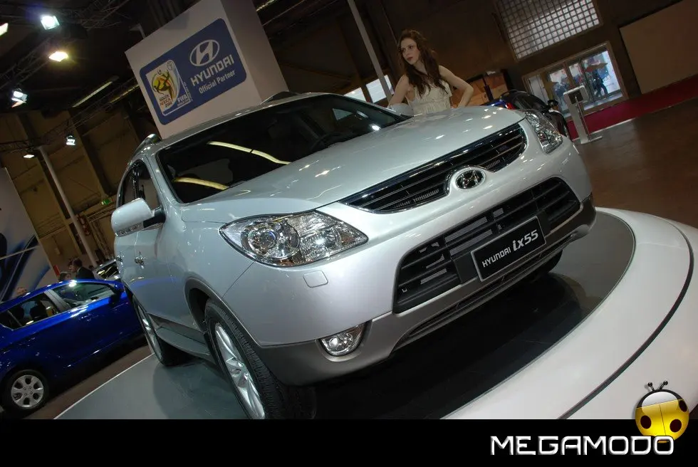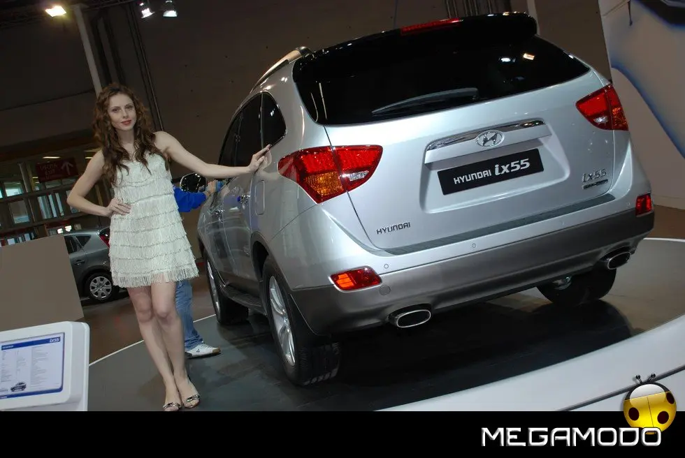 Il nuovo SUV Premium ix55, in configurazione sette posti fa il suo debutto italiano all’edizione di quest’anno del Motor Show di Bologna. ix55 completa al meglio l’attuale gamma SUV Hyundai, e si posiziona sopra a Tucson e Santa Fe. Basato sul Veracruz, prodotto che ha ben figurato sul mercato nordamericano e coreano, ix55 ha tratto notevole vantaggio da alcune valide migliorie per preparare al meglio il suo ingresso nel mercato europeo. L’unica versione prevista è equipaggiata dal nuovo diesel 3 litri V6 CRDi VGT turbodiesel, che si accompagna ad un inedito cambio automatico a sei velocità. Le reazioni dinamiche sono state riparametrate alle esigenze del mercato europeo, grazie a sospensioni aggiornate ed un diverso settaggio dello sterzo. Il risultato è una guida più coinvolgente e briosa e una maggior maneggevolezza. Lo stile è moderno e sportivo e il livello delle dotazioni standard è decisamente elevato. Hyundai ix55, che segue le orme dell’originale design iniziato da i10, i20 e i30, nasconde, dietro uno stile raffinato e dalle proporzioni bilanciate, grinta e forza, il tutto arricchito da fari allo xeno, cerchi in lega da 18”, doppio tubo di scarico integrato. ix55 è dotata di una sofisticata trazione integrale TOD (Torque on Demand) che consente, entrando in funzione solo quando serve, di muoversi con estrema facilità su superfici a bassa aderenza.