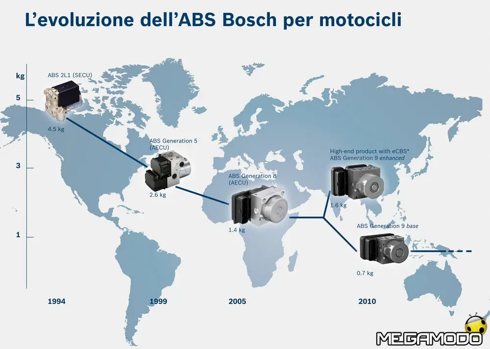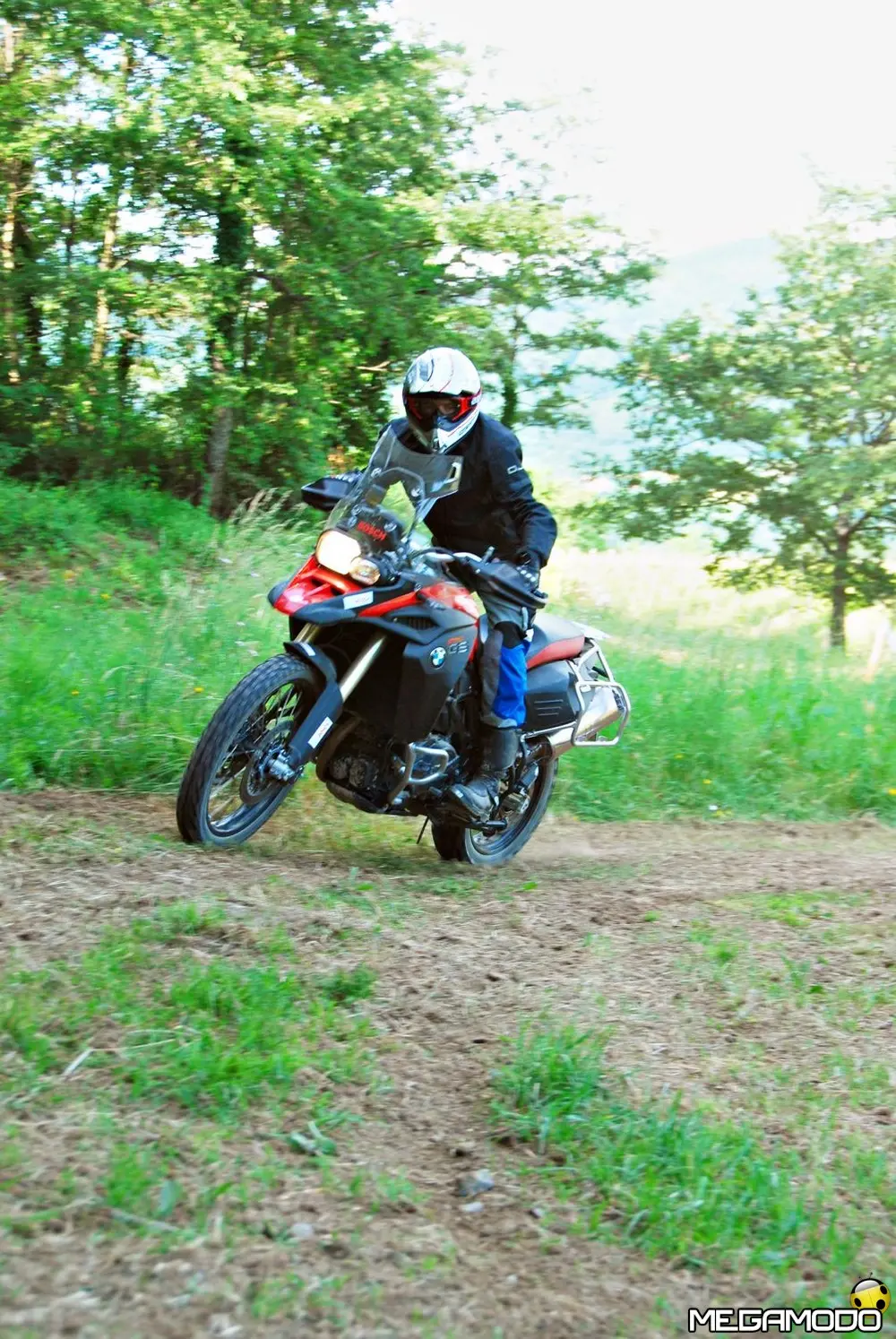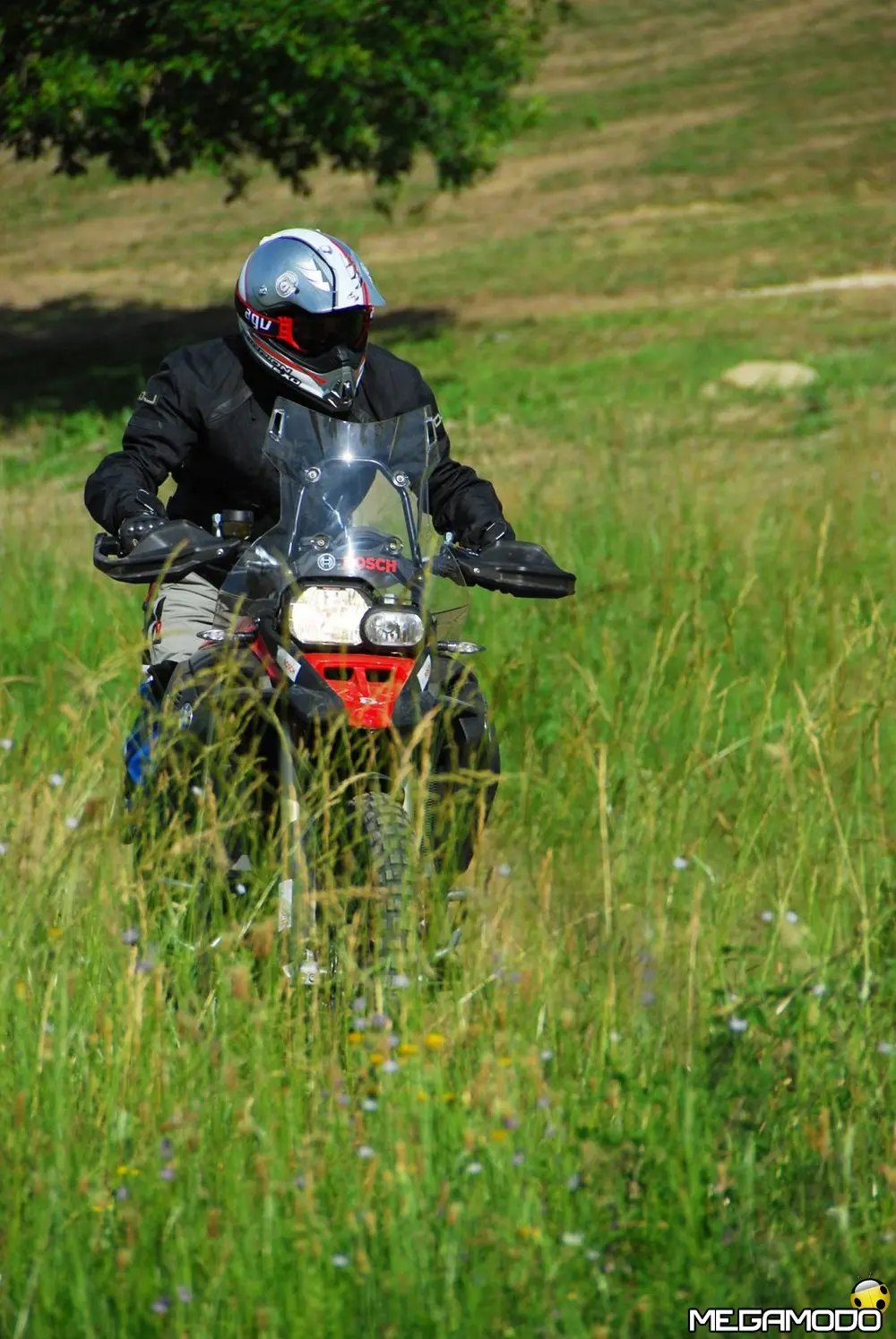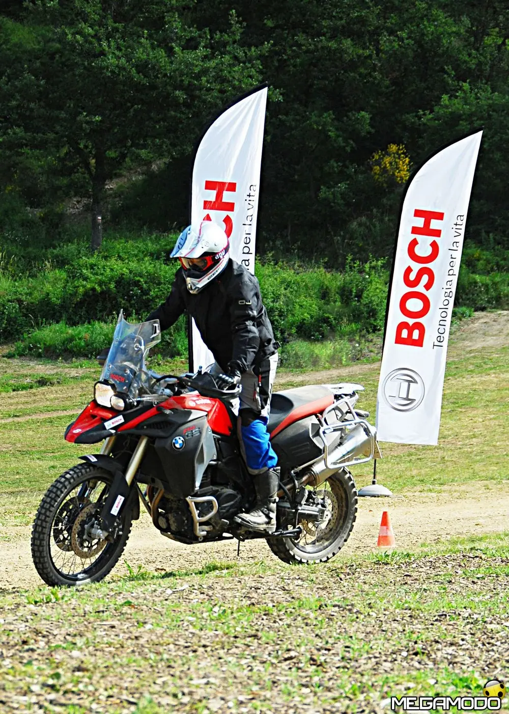Prendiamo ad esempio la pedana che deve essere in gomma per assorbire le vibrazioni; gli pneumatici devono avere caratteristiche specifiche poiché la guida su sterrato con ostacoli, buche, pietre etc. non ha le stesse caratteristiche di una pista liscia. Per lo stesso motivo sono state apportate ulteriori modifiche come i cerchi a raggi, paramotori, regolazione del manubrio e delle leve, il cupolino e gli specchi sono stati eliminati. Se la moto ha un ABS standard, cioè che non permette il bloccaggio della ruota, è necessario disattivarlo. Nel fuoristrada non abbiamo grip quindi se l’ABS non permette il bloccaggio e non ci si riesce a fermare. E qui entra in scena l’ABS Bosch sulla nuova F 800 GS Adventure che, attivo nella versione offroad, trasmette sicurezza diminuendo i rischi per il motociclista distribuendo perfettamente la frenata anche su terra e percorsi difficili.
