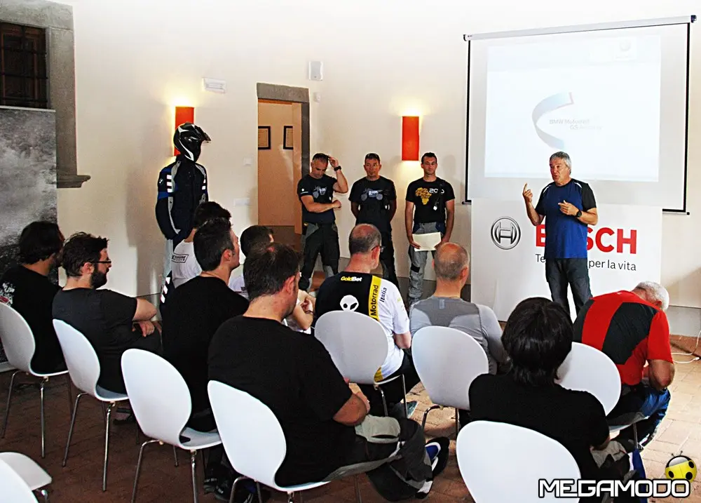Alcuni mi chiedono, ma è davvero utile un corso di guida del genere? E la risposta ora è secca, assolutamente si! E i motivi possono essere sintetizzati in due concetti precisi: il primo è l'aumento di sensibilità e feeling tra il pilota e la propria moto, è come "sposarsi" completamente con lei, non ci saranno più segreti tra i due, anche la classica caduta a terra saltando un tronco aumenterà il legame tra le parti; e poi il piacere, il godimento immenso di trovarsi tra alberi, vallate, colline, casolari abbandonati tra i monti toscani, percorsi abbandonati, sentieri tortuosi dove le rocce e il fango ne fanno da padrone e rendersi conto che il tuo GS ti porterà dolcemente ovunque desideri con una facilità disarmante! Sotto la direzione del Direttore Tecnico Beppe Gualini, 65 Rally Africani tra cui 10 Parigi-Dakar parlano da soli, abbiamo avuto il piacere di seguire i corsi di guida Off Road “BMW Motorrad GS Academy” prima con lezione in aula e sul campo per poi mettere in pratica gli insegnamenti tra i sentieri delle Tenute dei Marchesi de' Frescobaldi, tra i più prestigiosi produttori italiani di vini di qualità, in particolare presso il Castello di Pomino, Toscana. E grazie a Bosch abbiamo avuto anche la possibilità di capire come la tecnologia ABS abbia fatto negli anni passi da gigante andando a rendere la guida, anche Off-Road, molto più sicura. Sicurezza e piacere di guida sono due fattori imprescindibili.