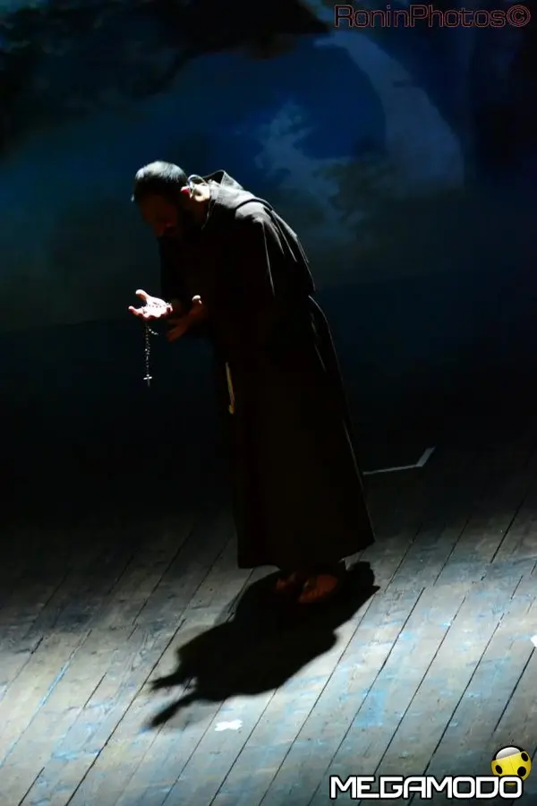 Megamodo ha incontrato Don Alessandro Grimaldi che ci parla con entusiasmo del progetto: nato un anno fa, esattamente nel periodo in cui si festeggia San Pio, e con l’intento di fare del teatro un mezzo per la trasmissione di messaggi educativi, il musical, vuole essere uno strumento di evangelizzazione. Attraverso l’attivazione del Settore Teatro, l’Ufficio Comunicazioni sociali della Curia ha promosso il progetto del musical, un sogno che sembrava lontano ed impossibile. La cooperativa Passione Educativa, si è occupata della produzione dello spettacolo, fungendo da braccio operativo della Curia ed ecco che dalla carta il progetto comincia ad avere forma concreta. Al via le audizioni pubbliche al quale hanno risposto in tanti da tutta Italia finchè la rosa dei protagonisti si è costituita. Personalmente credo che la forza di questo gruppo sia nell’entusiasmo, nell’impegno a cui ciascuno di loro non si è mai sottratto, nella voglia di fare, di essere artisti a 360°.