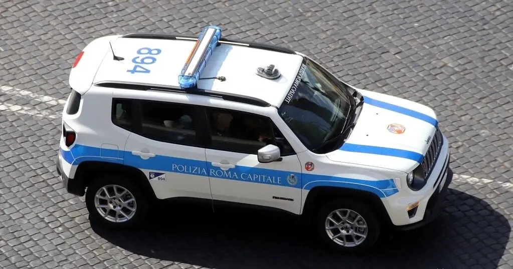 Infine, sulla sommità del parabrezza è presente una scritta adesiva “Polizia Roma Capitale” in modo che sia immediatamente riconoscibile anche dai conducenti che precedono il veicolo. Tutti questi accessori sono progettati per garantire una maggiore visibilità del veicolo e migliorare la capacità della Polizia locale di comunicare in modo efficace con i cittadini durante le operazioni di sicurezza pubblica.