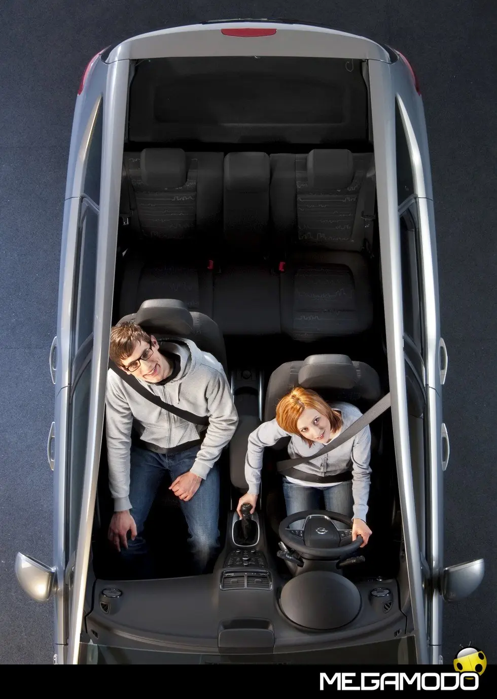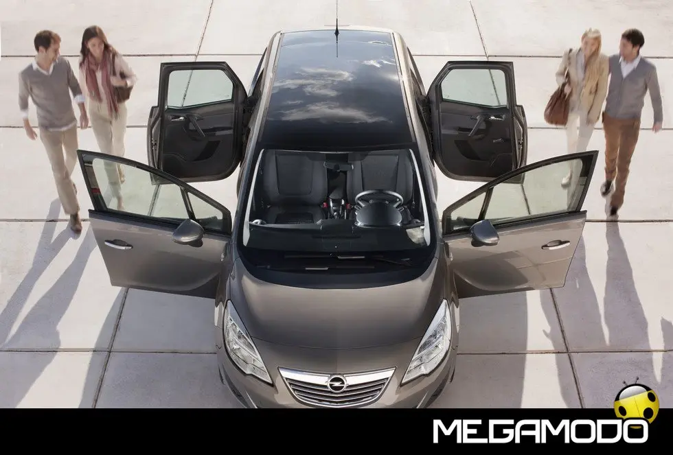 Meriva apre una nuova dimensione dell’accesso ai sedili posteriori con le originali portiere incernierate sul montante posteriore. Le FlexDoors hanno dimensioni standard e si aprono in modo indipendente rispetto alle portiere anteriori, grazie all’adozione di un robusto montante centrale che aumenta la rigidezza e la sicurezza passiva.