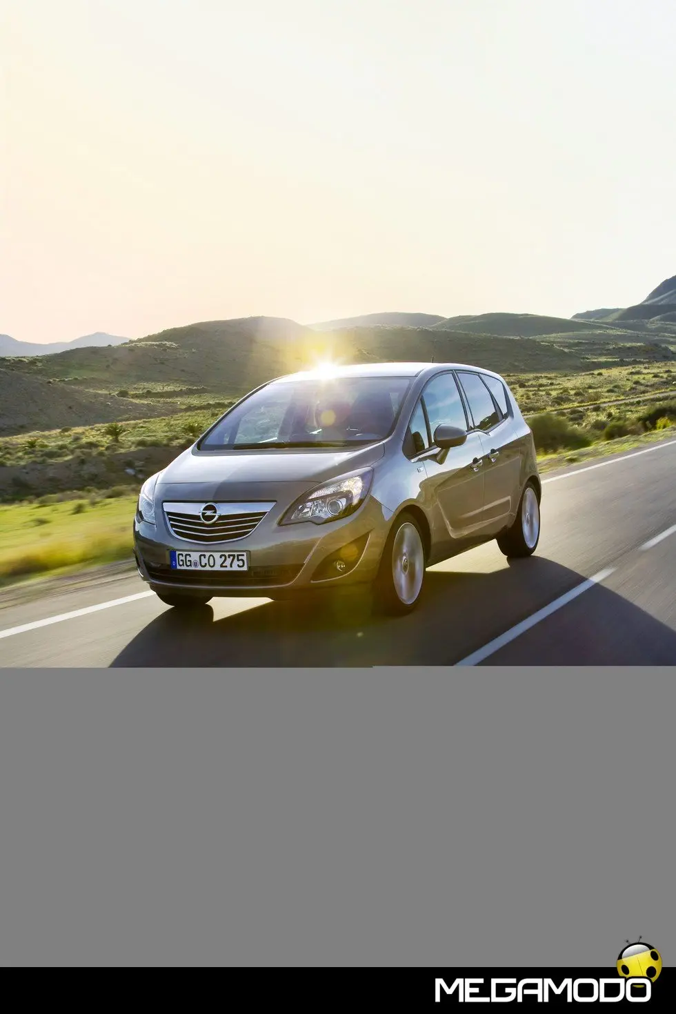 Il 100 cv da 1,4 litri è l’unico aspirato della gamma, con temporizzazione variabile delle valvole per migliorare la respirazione. Il nuovissimo 1.4 Turbo da 88 kW/120 cv con 175 Nm di coppia fa il debutto mondiale sulla Meriva, sostituendo il 1.6 da 105 cv, con una riduzione del 10 per cento delle emissioni di CO2 e dei consumi, ma un aumento di potenza pari a circa il 15 per cento. Al top della gamma il più potente 1.4 Turbo da 103 kW/140 cv. Eroga una coppia da 200 Nm ed è dotato di cambio manuale a 6 velocità. Rispetto al 1.8 della generazione precedente di Meriva, la potenza del nuovo motore 1.4 Turbo è superiore del 12 per cento mentre le emissioni di CO2 si riducono del 10 per cento. Al momento del lancio saranno disponibili anche due motori diesel: