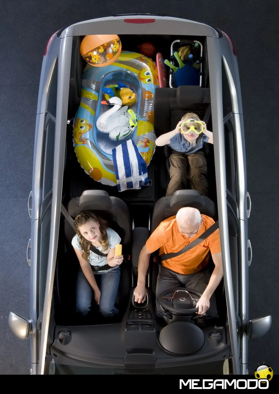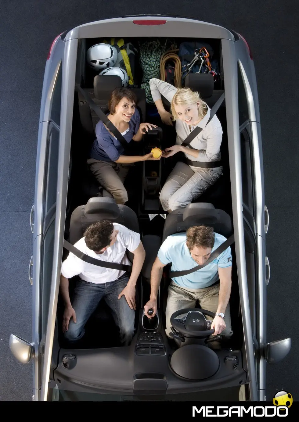 I sedili del sistema FlexSpace permettono ai passeggeri posteriori di avere una seduta più alta rispetto ai passeggeri anteriori e, quindi, una migliore visibilità della strada rispetto alle vetture tradizionali.