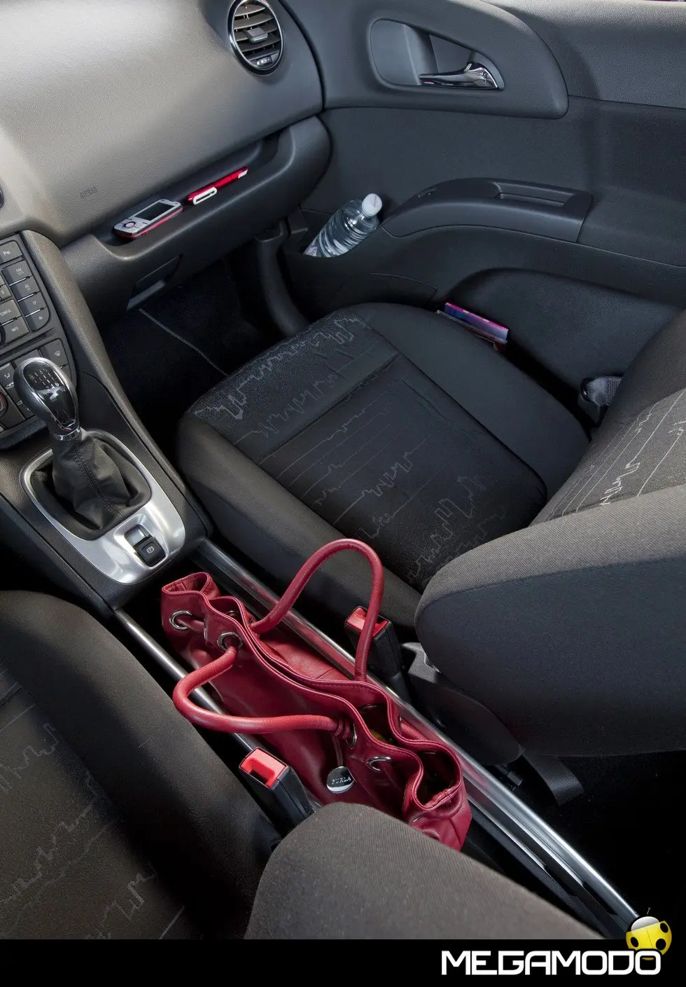 Lo spazio di stivaggio è cresciuto notevolmente in tutto l’abitacolo; Meriva dispone in totale di 32 vani facilmente accessibili per riporre gli oggetti di uso più comune. Tra di essi, il rivoluzionario sistema FlexRail nella console centrale, composto da vani modulari che scorrono su guide di alluminio posizionate tra i sedili anteriori, migliora l’ergonomia della nuova Meriva e crea un comodo bracciolo scorrevole. Lo spazio per il sistema FlexRail è stato creato sollevando la leva del cambio e montando di serie il freno di stazionamento elettronico.