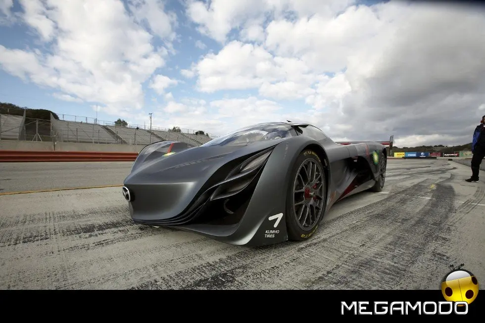 La concept-car Furai, la più recente “new-entry”della apprezzatissima e pluripremiata serie delle concept Nagare di Mazda, festeggia i 40 anni del motore rotativo e di tradizione nelle corse internazionali con un’interpretazione corsaiola del linguaggio stilistico NAGARE. Furai è un tipo di automobile che può essere proposta unicamente da una Casa capace di inserire lo “Spirito di una Vettura Sportiva” in ogni cosa che costruisce, ma con un occhio al futuro e all’ambiente con l’impiego di etanolo (E100) prodotto da BP. Ogni fine settimana, in Nord America corrono più Mazda e più vetture motorizzate Mazda rispetto ad ogni altro brand. Questo perchè ogni berlina, coupè e sportiva Mazda viene davvero progettata con il più alto contenuto possibile di Zoom-Zoom, che è il marchio di fabbrica della compagnia, l’autentica Emozione del Movimento. Tuttavia, Zoom-Zoom va ben oltre la pura prestazione del veicolo. Il look e lo stile espresso da Zoom Zoom possono essere meglio apprezzati già dai primi sviluppi basati su NAGARE , a partire dalla concept-car Mazda Nagare presentata a Los Angeles nel 2006, la Mazda Ryuga, esposta per la prima volta a Detroit proprio un anno fa, la Mazda Hakaze, che ha debuttato a Ginevra l’anno passato, e la Mazda Taiki, star del Motor Show di Tokyo 2007. “Nagare” indica come i futuri modelli Mazda alimenteranno lo spirito Zoom-Zoom mostrando la loro forte affinità per il movimento. I costruttori automobilistici espongono normalmente degli studi stilistici con una minima intenzione, o addirittura nessuna, di utilizzare realmente il tema presentato. Mazda ha un approccio opposto: tutte le concept car Nagare, compresa Furai, contribuiscono a evolvere questo suggestivo linguaggio di superfici per il futuro. Ogni veicolo Mazda incarna lo spirito di una vettura sportiva per realizzare un carattere dinamico Zoom-Zoom autentico. Nagare indica come verrà rappresentata questa impostazione sulle superfici interne ed esterne nei futuri modelli. Invece di una funzione che segue la forma, funzione e forma si fondono in una sola entità. Franz von Holzhausen, Direttore Design MNAO (Mazda North American Operations) responsabile del team che ha creato la Furai, spiega l’idea che è alla base di questa concept-car: “Cercavamo un modo per collegare il gap tra Mazda Motorsports e i modelli di serie della nostra gamma. L’approccio mentale dei sostenitori della vettura stradale e delle macchine da corsa è abbastanza diverso, così l’obiettivo di Furai è trovare un punto d’incontro per questi interessi così disparati”. “E, continua von Holzhausen, Furai realizza tutto questo superando i confini che tradizionalmente hanno differenziato la strada dalla pista. Storicamente, c’è stato un gap tra vetture da corsa specifiche e i modelli omologati stradali – comunemente indicati come supercar – che evocano macchine da corsa su strada”.