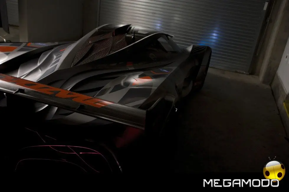 La concept Furai è un punto di svolta nel processo evolutivo di Nagare. Mentre le quattro precedenti concept car hanno esplorato diversi modi per esprimere l’emergente filosofia stilistica di Mazda e per esplorare un’estetica, questa è specificamente funzionale, ogni linea e ogni dettaglio ha un compito specifico. In sostanza, il processo creativo si è concentrato sullo studio del flusso dell’aria sopra e attraverso la carrozzeria nei modi più vantaggiosi. Ma, per dimostrare che questa concept car va ben oltre la semplice analisi statica dell’aerodinamica, i team design, motorsport e R&D di Mazda hanno lavorato insieme per fare di Furai una sorta di laboratorio mobile a 300 km/h per verificare le sue capacità funzionali. “Le proporzioni base delle attuali macchine da corsa sono il sogno di ogni designer”, spiega con entusiasmo von Holzhausen. “Furai è alta poco più di un metro, ma è larga più di due metri”. Furai ostenta una presenza incredibilmente possente, ma la vera bellezza del progetto – e il suo valore più importante come prototipo – è nei dettagli che von Holzhausen e il suo team hanno inserito: - La superficie della carrozzeria offre una grande opportunità di realizzare gli elementi clou del design come i fari aggressivi e la speciale griglia a cinque punti di Mazda. - Gli elementi di rivestimento del faro funzionano come strutture guida per contribuire ad eliminare la portanza aerodinamica. - Zone ad alta pressione subito sopra le ruote anteriori servono allo stesso scopo. - Le specifiche soluzioni per il flusso dell’aria incanalano l’aria in movimento sotto il muso della vettura, dirigendola all’interno verso i radiatori di raffreddamento del motore. - La tipica sagomatura Nagare incorporata nelle superfici laterali dirige l’aria sui freni posteriori, i radiatori dell’olio del motore e del cambio. - Un diffusore nel sottoscocca che inizia a risalire subito dopo l’abitacolo contribuisce a tendere il volume dell’aria che fluisce attraverso gli scambiatori di calore e nel vano motore fuori dal posteriore.