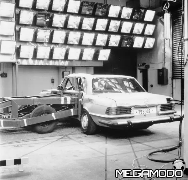 1979 - Mercedes-Benz Classe S Serie W 126 risponde ai requisiti di sicurezza in caso di impatto frontale asimmetrico grazie alla struttura a forcella della parte anteriore della vettura.