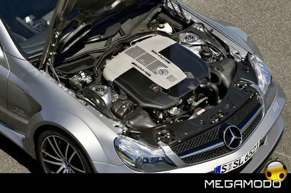 Ampie feritoie di ventilazione nel paraurti frontale e nel cofano motore evidenziano l'enorme potenza del dodici cilindri AMG biturbo. Da una cilindrata di 5.980 cc, il V12 AMG eroga una potenza massima di 493 kW/670 CV a 5.400 giri/min e mette a disposizione una coppia di 1.000 Nm (limitata elettronicamente) tra i 2.200 ed i 4.200 giri/min. Senza limitazioni, il motore biturbo V12 AMG da 6,0 litri, assemblato a mano nella fabbrica motori AMG secondo la filosofia "One man - One engine", arriverebbe a sviluppare una coppia massima di 1.200 Nm. Rispetto al propulsore del modello SL 65 AMG da 450 kW/612 CV, nel dodici cilindri di SL 65 AMG Black Series sono presenti nuovi turbocompressori. La sezione a spirale dei compressori ingrandita del 12%, ed i canali delle valvole waste-gate ottimizzati, consentono un maggiore passaggio di aria ed un'erogazione della potenza ancora più efficace a tutti i regimi. Diverse modifiche all'aspirazione determinano una risposta del motore ancora più reattiva. I silenziatori di nuova concezione dell'impianto di scarico sportivo AMG riducono la contropressione e contribuiscono ad incrementare la potenza. Un piacevole "effetto collaterale" acustico: i due terminali di scarico trapezoidali esaltano ulteriormente l'incisivo sound del dodici cilindri AMG. L'intercooler a bassa temperatura è più efficiente del 30% e, insieme al raffreddamento ottimizzato dell'acqua, garantisce uno sfruttamento ottimale della potenza in condizioni di elevata dinamica di marcia e la massima resistenza alle alte temperature esterne.