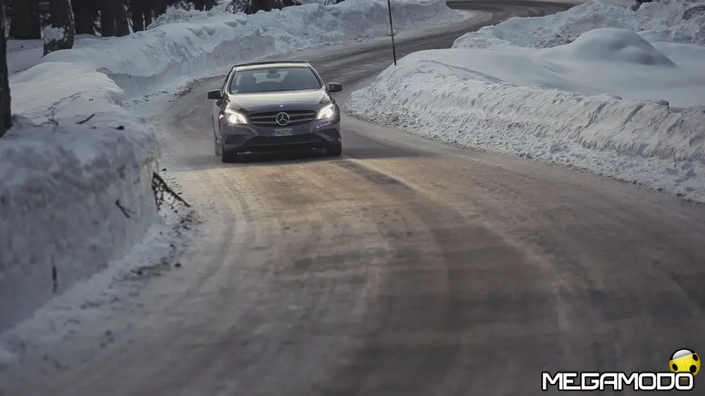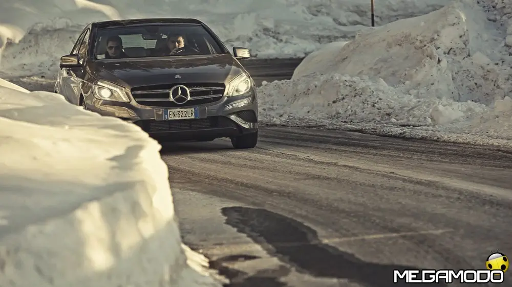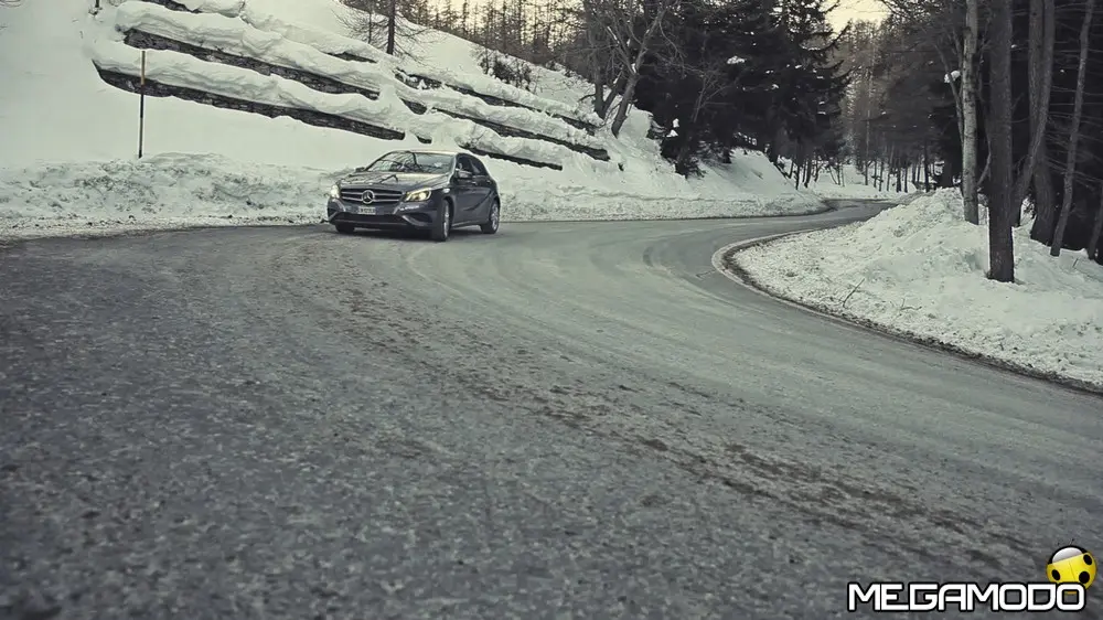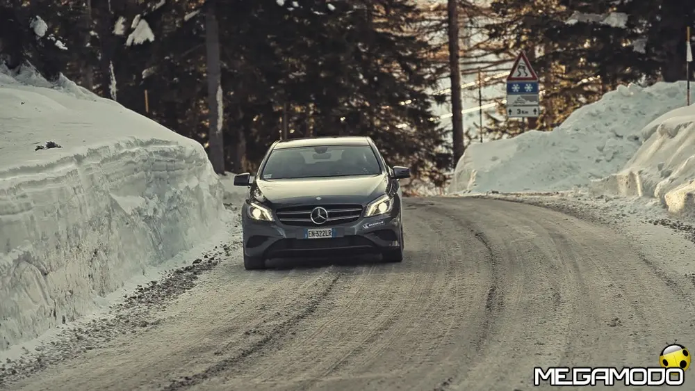 Ad ogni modo la Classe A nei dintorni di Courmayeur, con temperature di una dozzina di gradi sotto lo zero, e con ghiaccio e neve che erano una presenza costante, non l'avevamo ancora provata. Abbiamo guidato chilometri e chilometri con una convinzione: sulle gomme invernali c'è ancora troppa disinformazione, perché ancora troppa gente è convinta che le invernali sono coperture per chi vive in posti di montagna...e basta!
