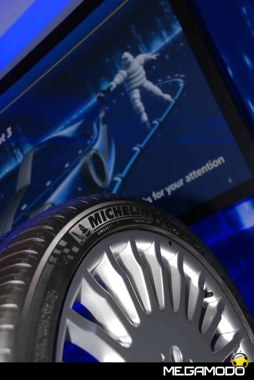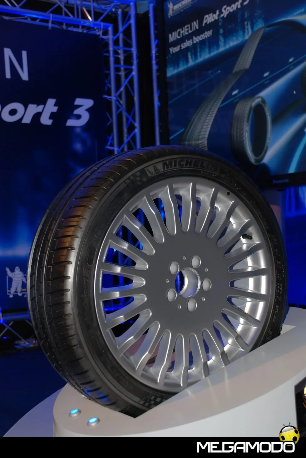 L’ultimo nato tra gli pneumatici Michelin per vetture segue la linea strategica seguita dal Gruppo, non sacrificare una caratteristica a scapito di un’altra. Molte qualità distinte sono state migliorate contemporaneamente. Altrimenti sarebbe stato impossibile pretendere di ottenere qualsiasi tipo di progresso. Per giungere a quest’equilibrio, il PS3 fa appello ad altissime tecnologie inedite come la Mescola Green Power, il Sistema Anti Surf e la Deformazione Programmata, sviluppate nel Centro Ricerca e Sviluppo. Questo pneumatico è stato progettato per generare le migliori sensazioni di guida. Ciò che potrebbe essere considerato un fatto soggettivo, per Michelin è una realtà che scaturisce da fattori oggettivi. Infatti, il PS3 consente una guida precisa. Grazie a questo pneumatico, il conducente può controllare perfettamente il veicolo e sa esattamente come reagisce quando imposta una determinata angolazione del volante. Provare per credere!! Per la casa francese questo piacere di guida fa rima con sicurezza. Quando l’aderenza sulla strada diventa precaria, due azioni della guida si rivelano critiche: le curve e la frenata. Il PS3 fa appello a tecnologie inedite per offrire un altissimo potenziale di aderenza su strada bagnata. Il PS3 fa anche il primo passo verso una guida sportiva ma responsabile. Suscita piacere di guida riducendo al minimo possibili imprevisti. Il quadro non sarebbe completo per Michelin se questa caratteristica non fosse accompagnata dall’efficienza energetica. Sta proprio in questo tutta la sfida della tecnologia: fare progredire insieme prestazioni distinte. Il nuovo PS3 raccoglie la sfida di conferire maggiore sicurezza e allo stesso tempo di ridurre i consumi. Costituisce anche un vantaggio per l’ambiente perché le emissioni di CO2 risultano inferiori. In aggiunta alla sua efficienza energetica, il Pilot Sport 3 aumenta la durata chilometrica del 10% rispetto a quella del suo predecessore PS2, che in questo ambito era il punto di riferimento della sua categoria (test interni, effettuati sulla misura 225/45 ZR 17 91 Y). Questa prestazione ha un effetto positivo sulla riduzione delle materie prime. Meno pneumatici da smaltire!!