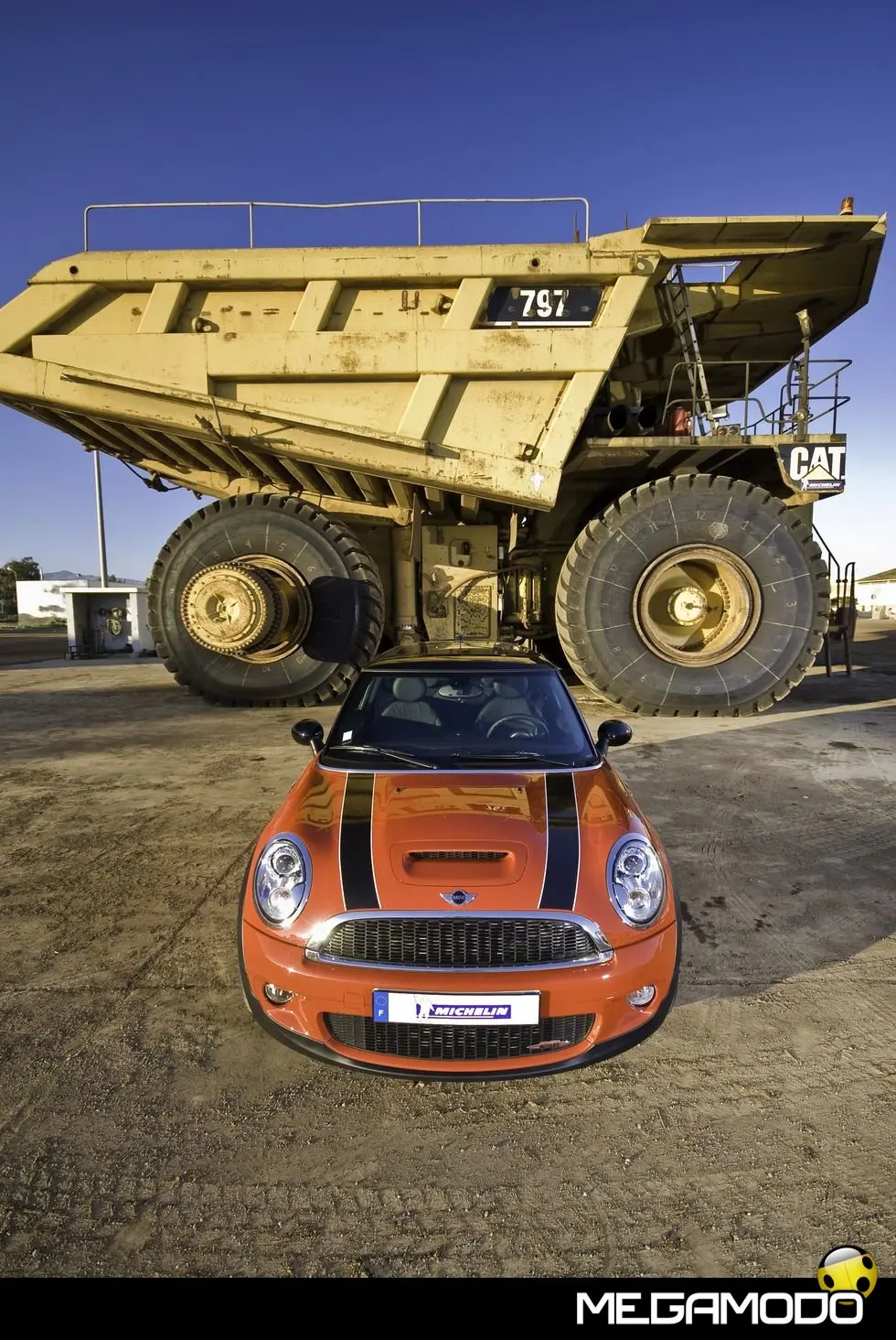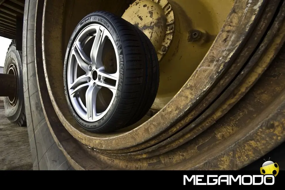 Caterpillar?!? Si qui come dicevamo vengono testati e sviluppati i pneumatici per il colosso americano. Il CAT 797 (il dumper più grande al mondo) paragonabile ad una casa di oltre 7 metri è equipaggiato con il pneumatico dalle dimensioni senza pari: 4,03 metri di altezza, 1,5 metri di larghezza, 5,3 tonnellate di peso. Un sensore GPS all’interno trasmette eventuali anomalie direttamente in un apposito centro di controllo a Clermont-Ferrand. Eh si…i tecnici francesi hanno pensato proprio a tutto!!! Il costo? Appena – si fa per dire – 30.000,00 euro (90.000,00 se trasportato in aereo).