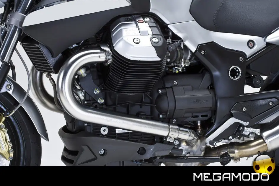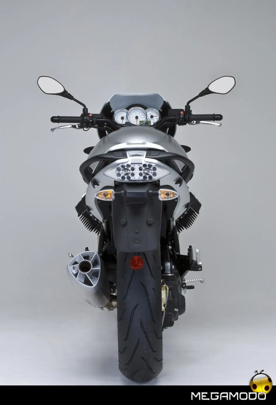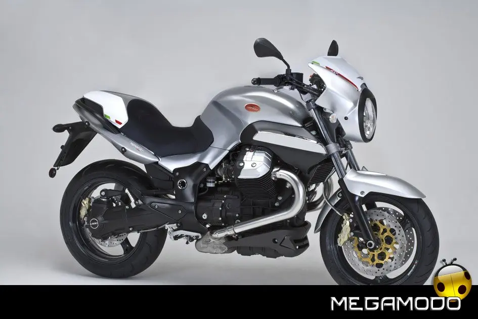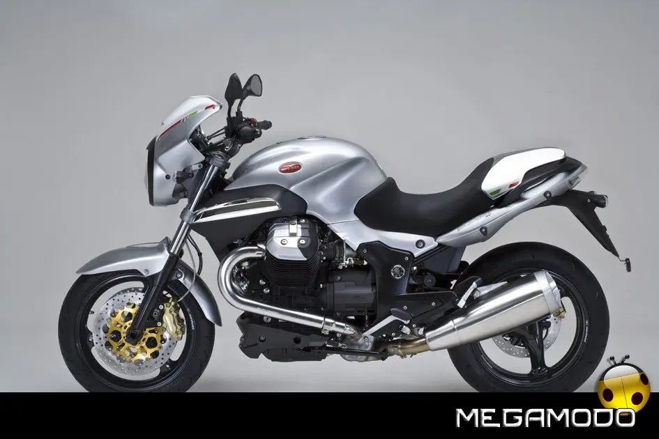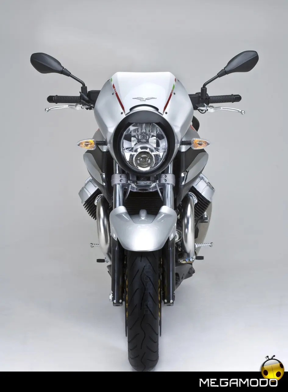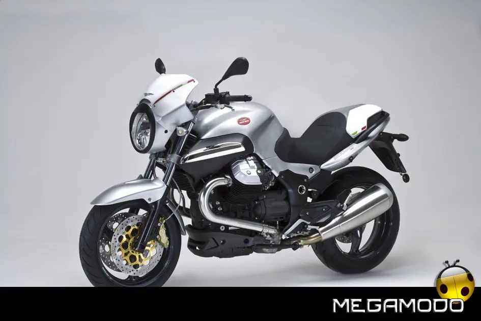 Scolpita con artistica vena e motorizzata dal prodigioso propulsore “Quattrovalvole”, la Griso 8V compie a Colonia il suo primo anno di vita, confermando caratteristiche e colori, tra i quali uno scintillante bianco perlato, colore presente anche sulla Bellagio come tinta base per un elegante bicolore tono su tono in contrasto con la finitura cromata delle protezioni telaio. Nuova è anche la sella biposto e la taratura della sospensione posteriore ribassata per rimarcarne l’immagine cruiser.