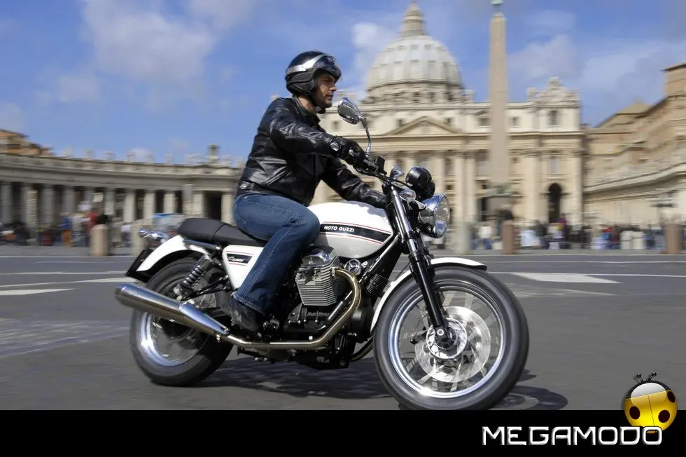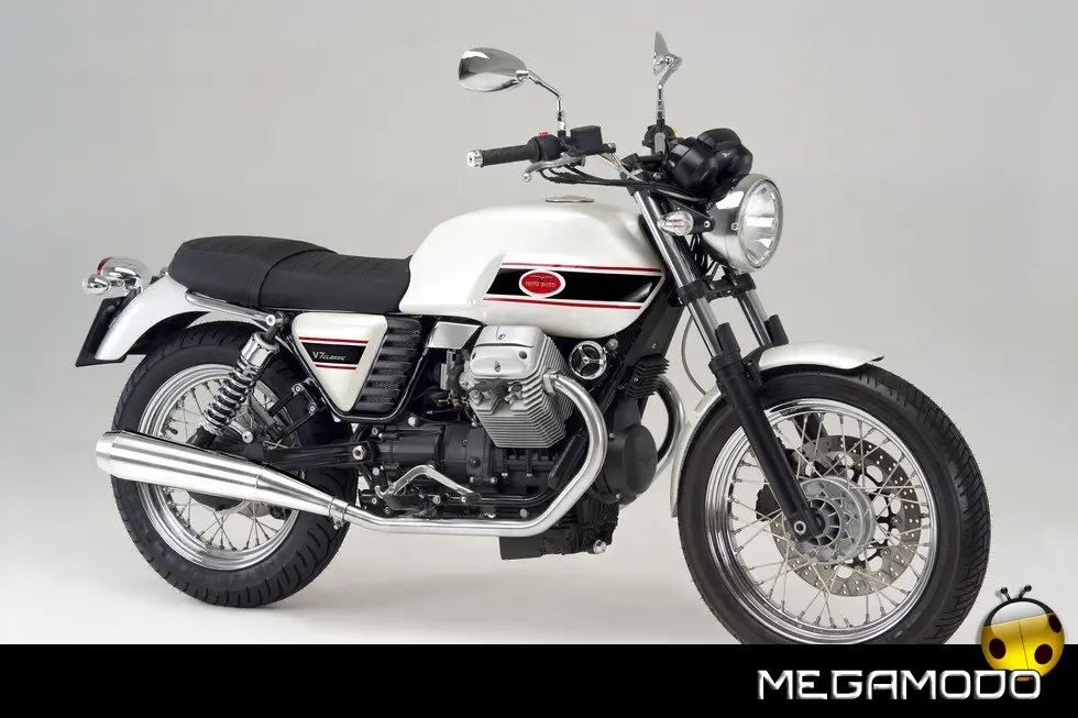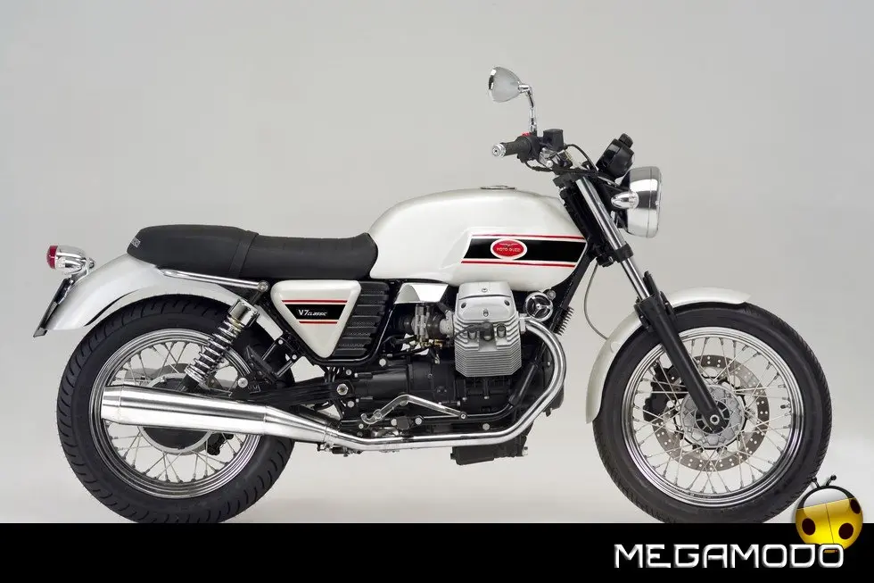 Debutta a Milano Moto Guzzi V7 Classic, una moto dalle linee senza tempo e un omaggio alla eleganza dello stile Guzzi. Equipaggiata col classico 750 cc ed esteticamente caratterizzata dalla linea piatta che integra sella e serbatoio, V7 Classic è straordinariamente godibile e versatile per riscoprire il piacere di andare in moto macinando chilometri, alla ricerca di nuovi itinerari. Ma V7 Classic è anche una moto facile, da sfruttare per muoversi in ambito metropolitano con uno stile unico, guidando ogni giorno una Moto Guzzi. Moto Guzzi V7 Classic sarà in vendita a maggio al prezzo di lancio di 7.990 euro. Nel 1967 il mercato motociclistico fu scosso dall’apparizione della prima maxi moto italiana: la Moto Guzzi V7 che dette il via a un periodo storico tra i più fulgidi del marchio. Quarantuno anni più tardi, quella storia felice e tutta italiana riprende con la nuova V7 Classic.