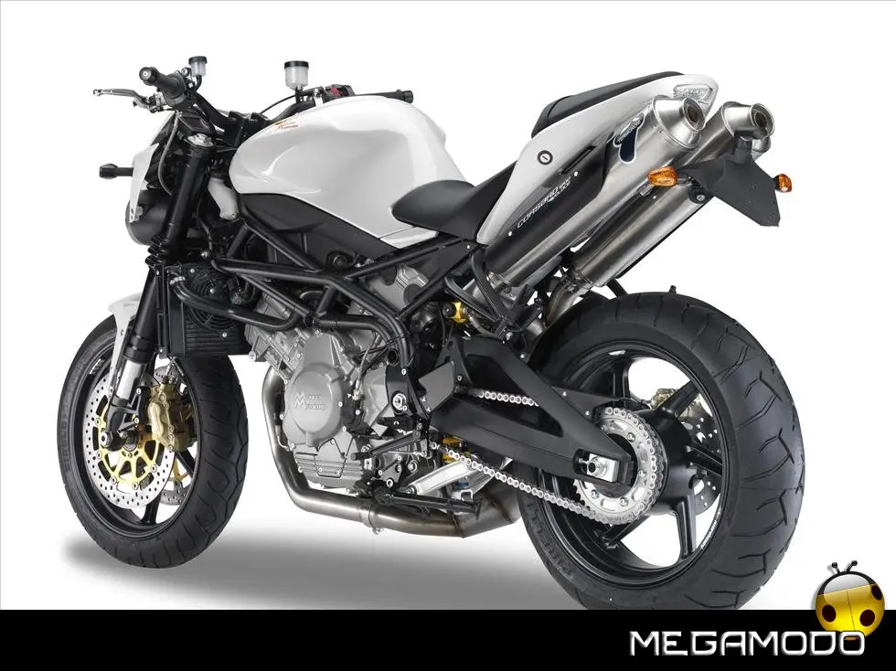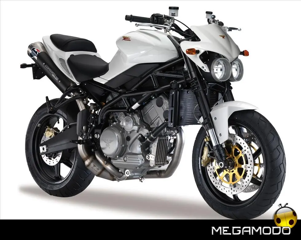 Motore: Moto Morini – Bialbero CorsaCorta Cilindri: 2 Disposizione: V 87° longitudinale Tempi: 4 Raffreddamento: liquido Distribuzione: doppio albero, camme in testa Valvole per cilindro: 4 Alesaggio x corsa: 107 x 66 mm Cilindrata: 1187 cc Rapporto di compressione: 11,8 ± 0.3 Potenza: 103 Kw – 140 cv @ 8500 giri/min Coppia: 123 Nm – 12,5 Kgm @ 6500 giri/min Alimentazione: iniezione elettronica indiretta Magneti Marelli con corpo farfallato da 54 mm Ø Accensione: elettronica del tipo I.A.W. Avviamento: elettrico Lubrificazione: forzata con pompa trocoidale Cambio: ingranaggi a denti dritti sempre in presa Rapporti cambio: 6 In prima 13/36 In seconda 17/32 In terza 20/30 In quarta 22/28 In quinta 23/26 In sesta 24/25 Frizione: multidisco in bagno d’olio con dispositivo antisaltellamento e pompa radiale Trasmissione primaria: ingranaggi a denti dritti 55:31 Trasmissione finale: catena 17/40 Scarico: Termignoni Sport con doppio silenziatore e db killer, catalizzatore 3 vie con sonda lambda + centralina racing per uso in pista Emissioni inquinanti atmosferiche: Euro 3 Telaio: Verlicchi - traliccio di tubi in acciaio altoresistenziale Interasse: 1440 mm Inclinazione cannotto di sterzo: 24,5° Avancorsa: 103 mm Sospensione anteriore: Marzocchi upside down con steli da 50 mm Ø regolabile idraulicamente in estensione, compressione e precarico molla su ogni stelo. Asta in ergal, boccola flottante e contromolla in distensione. Escursione ruota anteriore: 129 mm Forcellone: fusione in lega di alluminio Sospensione posteriore: monoammortizzatore Ohlins con serbatoio separato pluriregolabile in lunghezza, pre-carico, estensione e compressione Escursione ruota posteriore: 130 mm Freno anteriore: Brembo - doppio disco da 320 mm con pinze a 4 pistoncini e pompa radiale Freno posteriore: Brembo (pompa e pinze) – mono disco da 220 mm con pinza a due pistoncini Pneumatico anteriore: Pirelli Diablo – 120/70 ZR 17 (58W) Pneumatico posteriore: Pirelli Diablo – 180/55 ZR 17 (73W) Cerchi: Brembo in lega leggera a 6 razze Dimensione cerchio anteriore: MT 3.50 x 17” Dimensione cerchio posteriore: MT 5.50 x 17” Supporto pedane pilota: in Ergal ricavate dal pieno con rapporto leva cambio corto e posizione pedane arretrate Lunghezza totale: 2070 mm Larghezza massima: 810 mm (esclusi specchi retrovisori) Altezza sella: 830 mm Altezza minima da terra: 140 mm Angolo di sterzo: 30° dx/sx * Peso in ordine di marcia senza carburante 196 Kg * Moto Morini indica il peso della moto completa di batteria, liquido refrigerante, olio motore e assenza di carburante Capacità serbatoio: 18 litri Capacità riserva: 4 litri Strumentazione: cruscotto Contagiri elettronico/analogico e tachimetro con display LCD multifunzione Colori: Rossa/Telaio nero – Nera/Telaio nero – Bianca/ Telaio nero Garanzia: 3 anni