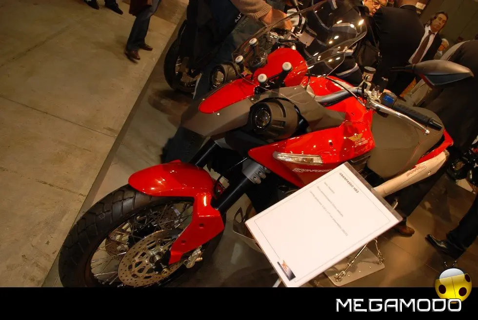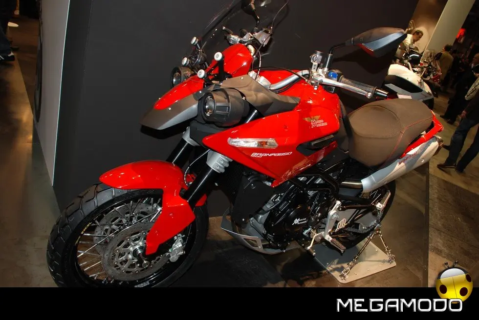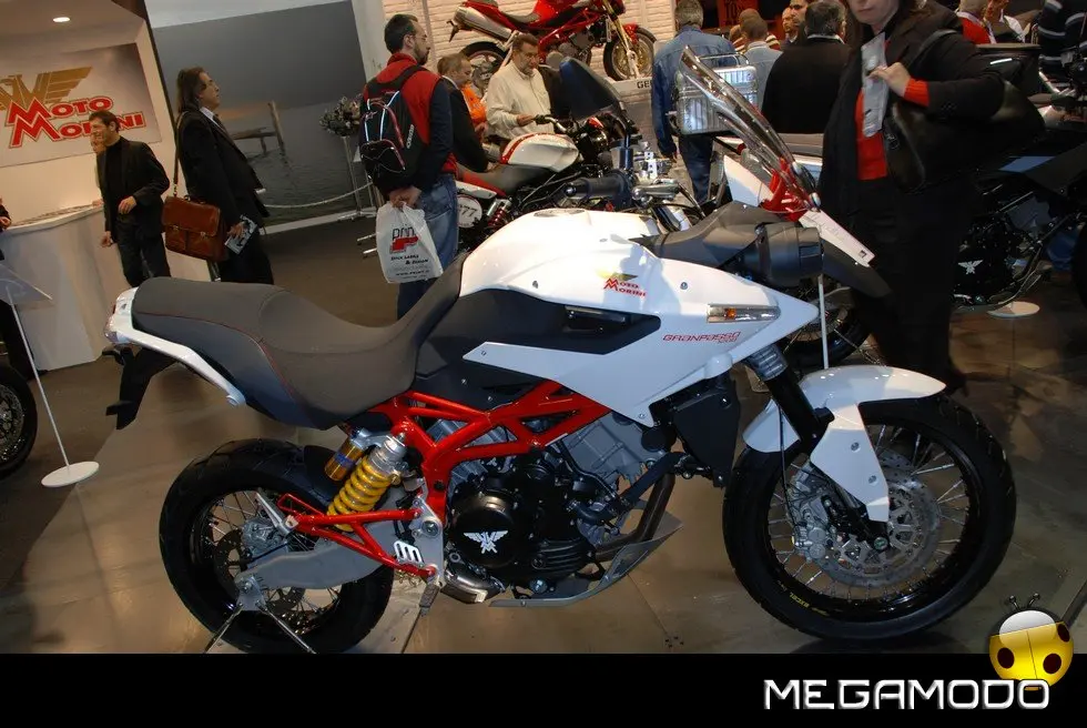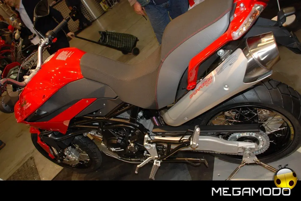 Turismo, fuoristrada, traffico urbano. Granpasso 1200 è dedicata al motociclista che fa molti chilometri, che vuole viaggiare comodo e arrivare anche dove finisce l’asfalto, che usa la moto in città, ma che vuole anche divertirsi. Moto Morini presenta la propria interpretazione dell’Enduro stradale, una moto polivalente e versatile, adatta al turismo ma con quell’inconfondibile impronta sportiva che è nel DNA di tutte le Morini. Granpasso 1200 si presenta con un look grintoso, nel quale risalta il telaio in traliccio, a sottolineare il carattere italiano e l’indole sportiva della proposta Morini. L’estetica della moto comunica immediatamente agilità e leggerezza e sembra romettere già ad un primo sguardo grande personalità e prestazioni di assoluto livello. Parafrasando un concetto caro alla storia passata e recente di Moto Morini, possiamo sintetizzare lo stile di questa moto nella definizione di Enduro Veloce. La vista frontale con cupolino, doppio faro separato e parafango, trasmette grinta e sportività; analoghe sensazioni trasmettono altre scelte stilistiche, come quella di integrare nella carrozzeria gli indicatori di direzione. Naturalmente l’Enduro è Veloce non solo per scelte estetiche e stilistiche, ma per precisi input tecnici, ben sintetizzabili da alcuni componenti: ammortizzatore posteriore Ohlins con serbatoio separato, pluriregolabile in lunghezza, pre-carico, estensione e compressione; pompe freno e frizione radiali; frizione con sistema antisaltellamento, la prima enduro stradale ad adottare questo dispositivo, che rende più efficace la guida su strada. Anche la leggerezza, non solo visiva, ma reale, dal momento che il peso della moto è di poco superiore ai 200 kg, accentua il carattere sportivo della Granpasso e ne mette in evidenza la guidabilità. Lo stile, curato da Marabese Design, si caratterizza per la ricerca del perfetto bilanciamento di curve e tensioni di tutte le sovrastrutture: cupolino, serbatoio, sella e codino disegnano linee filanti, che rivelano il gusto di un’estetica italiana, ma anche la ricerca di soluzioni tecniche coerenti con gli aspetti funzionali. Il serbatoio è disegnato per consentire una posizione di guida avanzata senza rinunciare alla capienza, per garantire adeguata autonomia (27 lt.); la posizione di guida è rialzata come è logico in una enduro, ma i fianchi stretti consentono a tutti di poggiare agevolmente a terra. Il comfort è assicurato anche da una adeguata protezione aerodinamica. Grande attenzione anche per il passeggero: sellone lungo e sagomato per evitare scivolamenti in avanti, doppia maniglia perfettamente integrata nel design del codino, pedane ben posizionate per non affaticare le gambe anche nei lunghi tragitti, ottimo isolamento termico sugli scarichi. Insomma la situazione ideale per viaggiare comodi e divertirsi come chi guida.