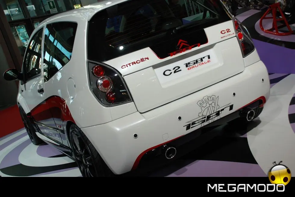 In occasione della sesta edizione del “My Special Car” in programma questo weekend presso la Fiera di Rimini, MV Agusta e Citroën Italia presentano la C2 1587 Brutale, una Show-Car destinata ad attirare l’attenzione dell’esigente pubblico di questo Salone del Tuning, dove niente è di serie. Ciò che ha reso possibile questa sinergia è la particolare attenzione che entrambi i marchi riservano ai propri prodotti: la cura del dettaglio è garanzia di qualità e affidabilità. La vettura prende il nome dalla regina delle naked best seller del prestigioso marchio varesino, e ne eredita la sportivissima livrea bianco perla/nero. La colorazione della carrozzeria del concept è stata studiata direttamente dal Centro Stile MV Agusta e rispecchia scrupolosamente la livrea del modello Brutale 1078RR, la versione più performante sul mercato.