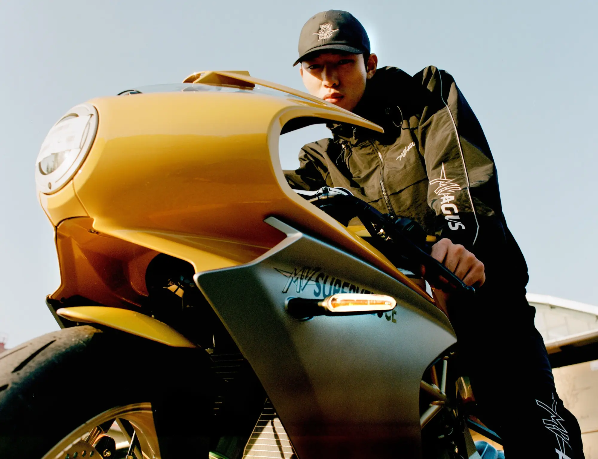 Hoodie, T-shirt e long-sleeve sfoggiano con orgoglio il logo MV Agusta, ma è il quilted jacket a catturare l’attenzione, con una trama a rombi che ricorda il mondo delle corse e ricami glam sul petto e sulla schiena - senza alcun dubbio la vera star della collezione. Questa seconda capsule comprende inoltre un tracksuit decisamente street, con il suo logo “extended version” e una vestibilità oversize.