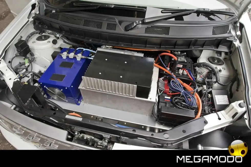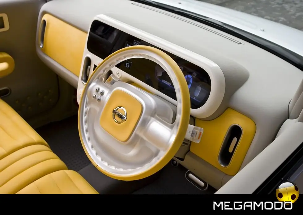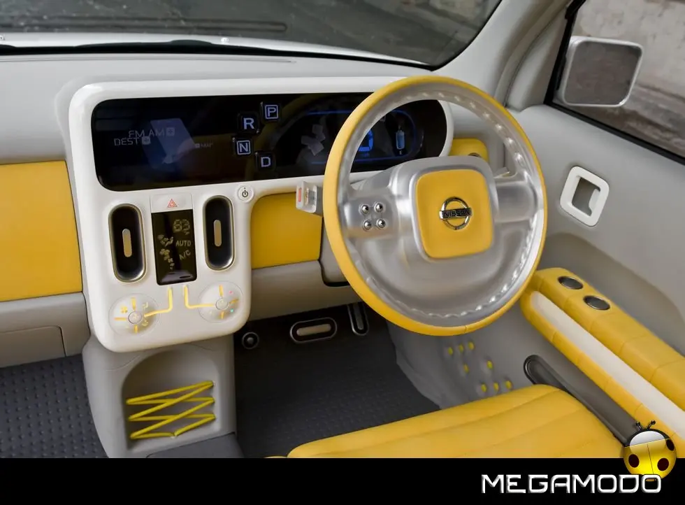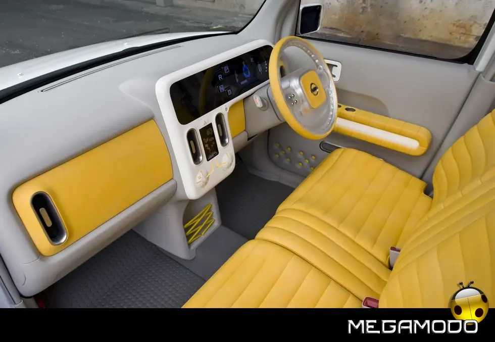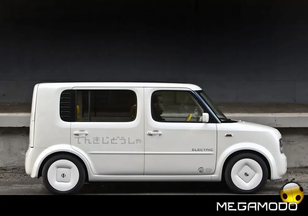 Benché il modello di serie preveda tre file di sedili, il concept Denki Cube ne ha solo due; il passo è stato allungato di 24 cm per fare spazio alle celle delle batterie. I divanetti sono stati pensati con creatività appositamente per l’auto, come pure il volante, il cruscotto – che ospita i pulsanti del cambio – i pannelli delle porte e l’allestimento dell’area di carico. Ma la differenza più grande tra la Cube di produzione e Denki Cube Concept è invisibile agli occhi: al posto del motore standard a benzina da 1,3 litri con 4 cilindri in linea, ci sono un’unità di propulsione elettrica e batterie laminate agli ioni di litio sistemate sotto il pavimento e i sedili.