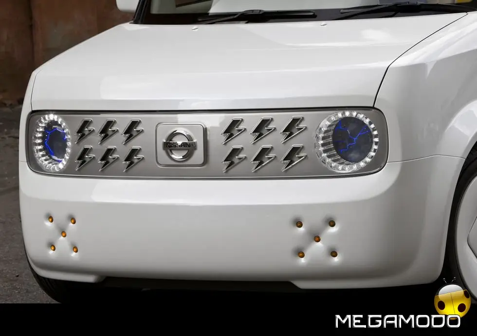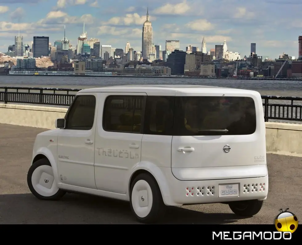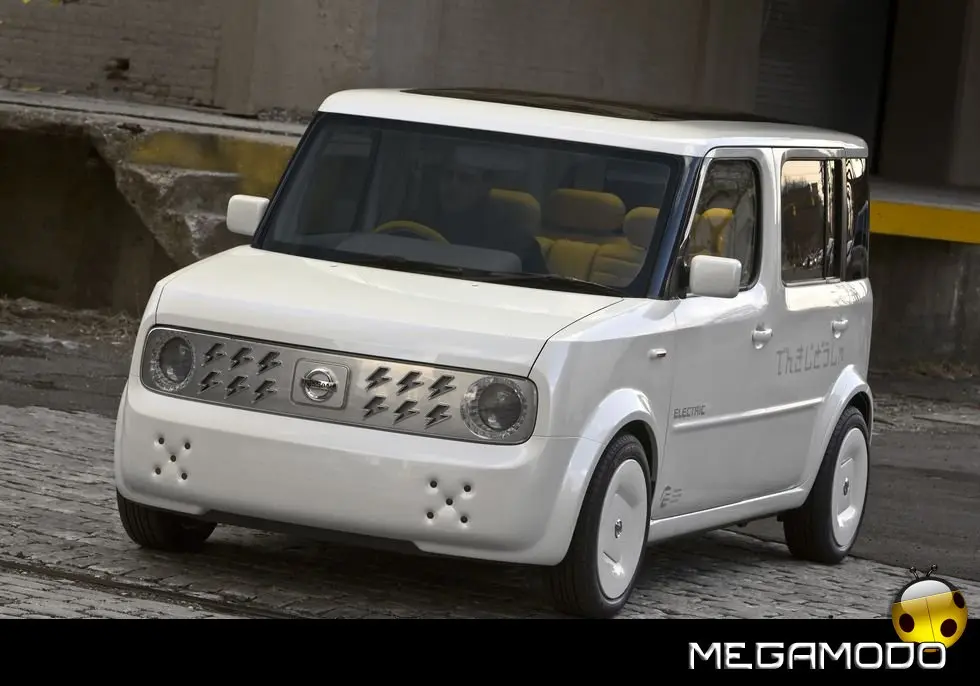 Quando la geografia incontra la geometria, ovvero, quando il mondo, che è rotondo, incontra Nissan Cube, che è fondamentalmente un cubo. Il nuovo concept Nissan Denki Cube (Denki in giapponese significa “elettrico”), dopo il debutto al Salone dell’Auto di New York 2008, sbarca in Europa per farsi ammirare al British Motor Show. Denki Cube è un veicolo ecologico, alimentato da batterie agli ioni di litio, che testimonia dell’impegno di Nissan in favore dell’ambiente. Denki Cube Concept è ovviamente improntato alla gamma attuale di Nissan Cube, evidente punto di partenza per lo sviluppo di questo progetto. La Cube, con la sua immagine fortemente distintiva, ha sempre rappresentato l’antitesi dell’automobile tradizionale – squadrata, minimalista, asimmetrica e semplice – ma anche accogliente, rilassante, pratica e di indiscutibile fascino. A queste doti, Denki Cube aggiunge la propulsione elettrica e una nuova originalità dentro e fuori. Le linee esterne di Denki Cube hanno subito un restyling sul frontale e in coda: spiccano la nuova griglia anteriore e i gruppi ottici dove “saettano” fulmini e scariche elettriche (davanti è collocata anche una presa in c.a. per la ricarica del veicolo).