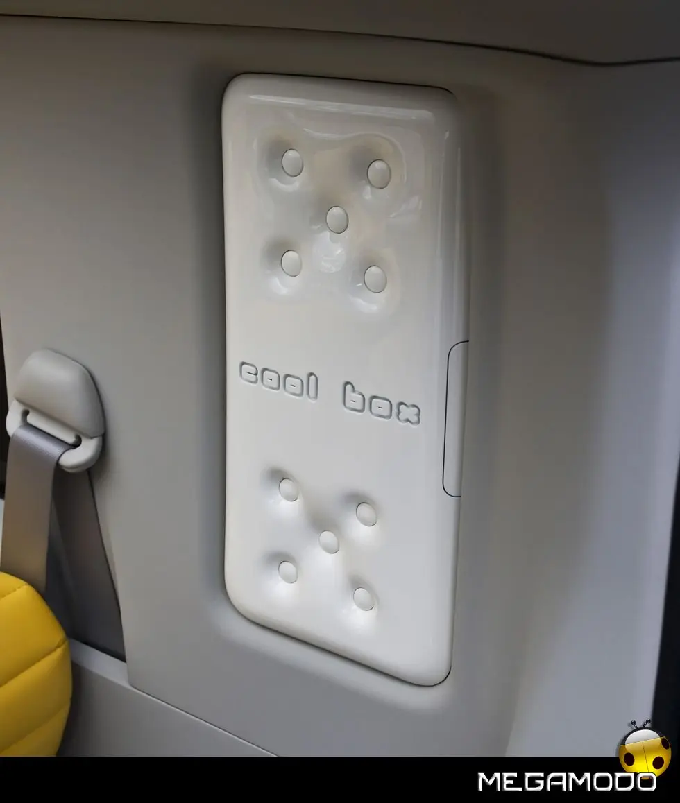 Nuovi sono anche il design del paraurti e gli indicatori di direzione. Nella parte posteriore, la caratteristica asimmetria del “cubo” (con il vetro avvolgente solo su un lato) è sottolineata da un nuovo paraurti con luci di coda nascoste. La spaziosità dell’abitacolo è enfatizzata da un pannello integrale in vetro che sostituisce il precedente tetto in lamiera. Denki Cube Concept ha anche nuovi retrovisori esterni e peculiari copriruota da 16”. La verniciatura è bianco perla, impreziosita da logotipi e motivi grafici. All’interno, Denki Cube Concept rispecchia il desiderio degli ideatori di creare un ambiente tranquillo che invita alla socialità, come il salotto di casa.