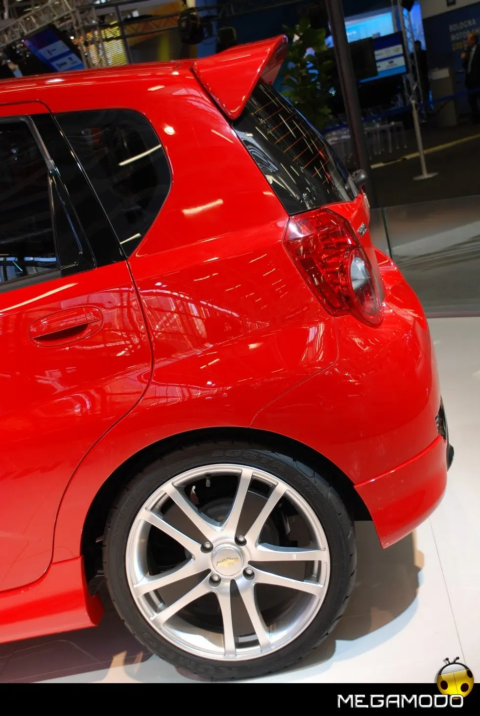 Chevrolet presenta in prima italiana, al Motor Show di Bologna, la novità Aveo. I caratteri più significativi di questo modello sono il design originale, gli interni di livello superiore ed un nuovo motore a benzina ancora più efficiente. In tutta Europa il nome Aveo, oggi riservato alla berlina a quattro porte, si applicherà anche alla nuova due volumi. Come tutte le Chevrolet, la nuova Aveo si distinguerà per l’eccezionale convenienza. La Aveo a due volumi mostra tutti i più recenti temi del design Chevrolet, come la grande mascherina del radiatore divisa in orizzontale da un elemento trasversale in tinta con la carrozzeria e con in centro il logo del marchio in evidenza. Dettagli all’insegna del dinamismo sono le ampie calotte trasparenti dei gruppi ottici anteriori, di forma arrotondata, e i fendinebbia che spuntano come riflettori spot nella parte inferiore del paraurti. Il cofano segue i tratti della mascherina e confluisce nei montanti del parabrezza sviluppando linee sorprendenti che esaltano l’aspetto sportivo. Gli indicatori di direzione laterali integrati negli specchietti esterni migliorano la sicurezza. Nella vista laterale, l’evidente linea di cintura cattura l’attenzione come peraltro accade anche con i dinamici profili che si estendono dall’anteriore alla porta posteriore. La coda è dominata dal robusto scudo paraurti e dai fari circolari alloggiati sotto una calotta trasparente.