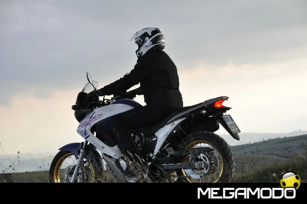 Colorazioni 2010 - Shasta White/Carnelian Red Metallic - Shasta White/Moody Blue Metallic con cerchi color oro (anche versione ABS) - Pearl Concours Black (anche versione ABS) Le Principali Caratteristiche - Styling aggressivo, che ne valorizza le linee per una sofisticata immagine da vera Adventure Sport. - Potente e regolare V2 da 680 cc con iniezione elettronica, raffreddamento a liquido e testate a 4 valvole, per una perfetta erogazione della potenza in tutte le condizioni. - Robusto paramotore in resina stampata, per una perfetta protezione dei componenti inferiori da sporco e ghiaia. - Efficiente sistema catalizzante a basse emissioni HECS3 con sonda lambda, per una piena conformità ai parametri EURO-3. - Componenti di telaio, sospensioni e ciclistica studiati per mantenere dimensioni compatte e migliorare la maneggevolezza del mezzo. - Versione con ABS Combinato per una sicurezza e un controllo assoluti. - Splendido faro multi-reflector, con lampade separate per abbagliante e anabbagliante. - Strumentazione compatta, con ampio quadrante del contagiri e chiare letture su display LCD per tachimetro, contachilometri, parziale e totale, orologio e livello carburante. - Sospensione posteriore regolabile, che consente al pilota di adattare in modo ideale la moto alle caratteristiche del terreno od al carico. - Borse laterali da 29 litri e bauletto da 45 litri (opzionali) per incrementare la capacità di carico. - In futuro sarà disponibile anche una serratura aggiuntiva per il bauletto, per utilizzare la stessa chiave per l'accensione e il bauletto. - Gli accessori originali Honda sviluppati per la Transalp comprendono: pannelli colorati per le borse laterali, elegante quadro strumenti con look alluminio, protezione serbatoio e modanature per la carenatura, parabrezza più alto, kit fari fendinebbia (anteriore e posteriore), manopole riscaldate, cavalletto centrale e navigatore satellitare Honda. Il prezzo? Per portarla a casa occorrono 7.600 euro.