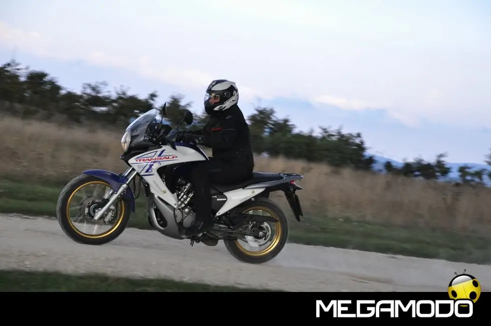 L'eccellente tenuta di strada della Transalp nasce da una combinazione di fattori, fra cui la qualità delle sospensioni a lunga escursione, l'ampiezza degli pneumatici (al posteriore troviamo una 130/80-17) e l'affidabilità dell’impianto frenante (dischi da 256 mm all'anteriore e da 240 mm al posteriore). Sulla versione base le pinze anteriori sono a due pistoncini, che diventano tre sulla versione con ABS (peccato che non sia disinseribile), dato che quello centrale sinistro è azionato dal comando a pedale del freno posteriore. Elegante e pratica da utilizzare, la Transalp offre anche tanta robustezza e durata nel tempo. Una volta in sella garantisce un feeling immediato con il guidatore. Bastano poche curve, infatti, per sentirsi la moto sotto controllo. Ottimo l'equilibrio ciclistico, che si traduce nell'uso stradale, in angoli di piega molto elevati facilissimi da gestire; la frenata non mette mai in crisi le sospensioni. Molto contenuto anche il livello delle vibrazioni che si percepiscono sul corpo.