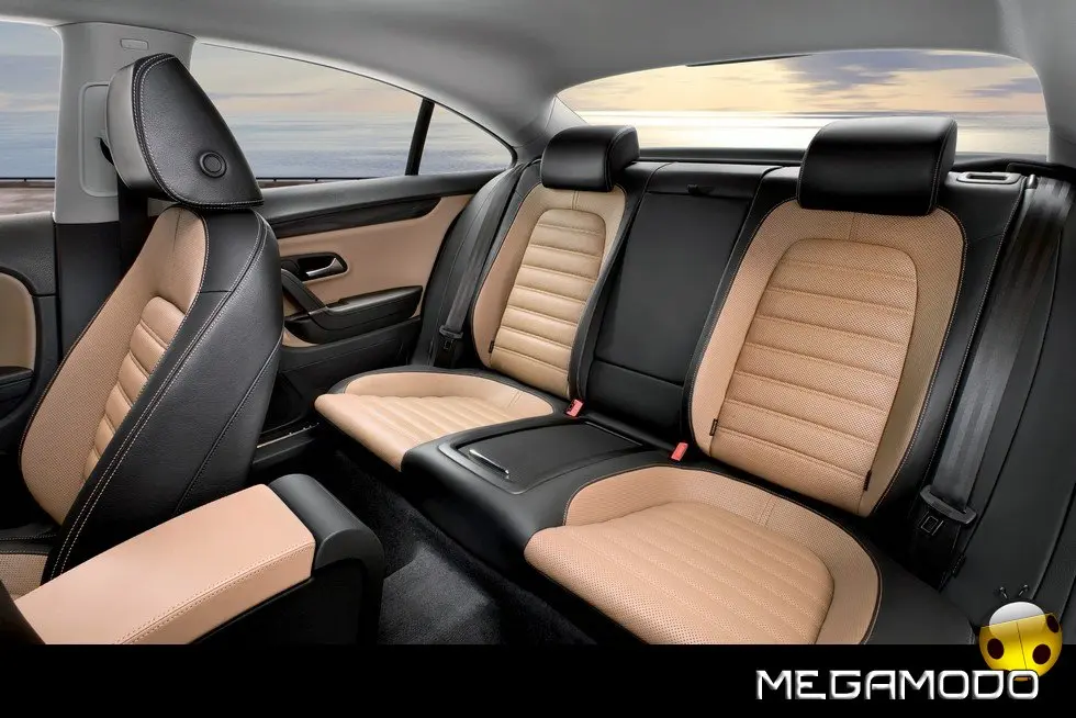 Sedili posteriori Il massimo comfort durante i viaggi a lunga percorrenza è offerto dai sedili posteriori individuali. Come per quelli anteriori, anche qui è possibile avere a richiesta il sistema di climatizzazione. I sedili sportivi offrono – e qui sta la differenza rispetto ai tradizionali sedili posteriori a divanetto – un supporto laterale ergonomicamente ottimizzato sui lati della seduta e dello schienale. Tra i due sedili posteriori sono di serie il bracciolo centrale e il vano portaoggetti. Come quello anteriore, anche questo vano è dotato di due portabicchieri versatili, con coperchi scorrevoli per poter essere chiusi se non utilizzati. Quando si abbatte il bracciolo centrale, l'apertura che si crea consente di far passare eventuali oggetti lunghi, come per esempio gli sci, dal vano bagagli, il cui volume è pari a 535 litri (compreso l'alloggiamento della ruota di scorta). A richiesta la Passat CC è disponibile con gli schienali posteriori reclinabili in misura di 1/3 e 2/3. Per proteggere gli occupanti dei sedili posteriori dal sole è disponibile una tendina a comando elettrico per il lunotto. Inoltre è possibile ordinare i vetri oscurati per il lunotto e i cristalli laterali posteriori (65% di assorbimento della luce).