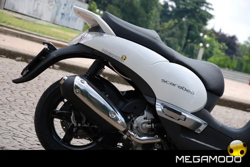 Scarabeo 300 Special è disponibile nelle colorazioni Bianco Glam, Nero Competition, Grigio Cruiser al prezzo di 4.490,00 euro (Franco Concessionario, IVA inclusa). In caso di rottamazione, usufruendo degli ecoincentivi il prezzo di Scarabeo 300 Special scende a 3.990,00 euro. SCHEDA TECNICA: Motore: monocilindrico 4 tempi con 4 valvole Cilindrata: 278,3 cm3 Alesaggio e Corsa: 75 mm x 63 mm Carburante: benzina senza piombo Rapporto di compressione: 10.5/11.5:1 Potenza max: 16,4 kW (22,3 CV) a 7.500 rpm Coppia max: 22 Nm a 6.500 rpm Alimentazione: iniezione elettronica con pompa carburante elettrica Avviamento: elettrico Generatore: 320 W Accensione: elettronica a scarica induttiva ed anticipo variabile Lubrificazione: a carter umido, circolazione forzata con pompa meccanica Cambio: automatico con variatore continuo Frizione: automatica centrifuga a secco Telaio: in tubi d’acciaio ad alta resistenza Sospensione anteriore: forcella telescopica a funzionamento idraulico, 104 mm di escursione Sospensione posteriore: ammortizzatore idraulico a doppio effetto con regolazione del precarico, 90 mm di escursione Freni anteriori: 260 mm con trasmissione idraulica Freni posteriori: combinato 240 mm Cercho anteriore: 3,00 x 16” in lega leggera Cerchio posteriore: 3,5 x 14” in lega leggera Pneumatico anteriore: 110/70 16" tubeless Pneumatico posteriore: 140/7014" tubeless Lunghezza: 2.270 mm Larghezza: 770 mm Interasse: 1.530 mm Altezza sella: 785 mm Capacità serbatoio carburante: 10 lt (di cui 1.5 litri di riserva) Emissioni: Euro 3