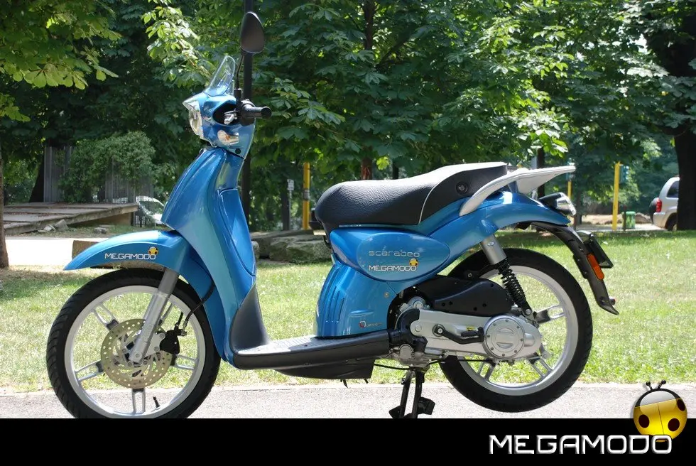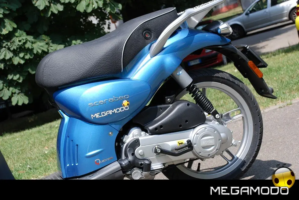 E' il più piccolo della nuova gamma presentata a Milano all'Arco della Pace, qualche giorno fa. È indubbio che l’arrivo di Scarabeo 50 abbia segnato l'inizio di un'epoca. Prima di lui lo scooter a ruota alta era un oggetto sconosciuto nelle città del mondo; dopo il suo arrivo la mobilità urbana è cambiata. Scarabeo è subito entrato a far parte degli “instant classic”, un prodotto unico nel suo genere che si è saputo rinnovare restando sempre uguale a se stesso. Uguale esteticamente alla versione che lo ha preceduto, il nuovo Scarabeo 50 4Valvole ne raccoglie l’eredità stilistica, aggiungendo i numerosi plus della nuova motorizzazione. Scarabeo 50 4Valvole conferma la ciclistica che ne ha decretato il successo durante tutti questi anni di commercializzazione. Il robusto telaio in tubi da acciaio ad alta resistenza offre grande maneggevolezza e stabilità sullo sconnesso, oltre a vantare ottime doti di rigidità torsionale, a tutto vantaggio del comportamento di guida. La forcella teleidraulica da 25 mm ha una corsa di ben 78 millimetri, offrendo la capacità di assorbire qualsiasi colpo. Comfort e precisione su Scarabeo si coniugano perfettamente. Merito anche della sospensione posteriore, dotata di un solido ammortizzatore idraulico con corsa di 78 mm. Di assoluto rilievo l’impianto frenante: il freno anteriore a disco da 220 mm adotta una pinza a doppio pistoncino contrapposto (30 mm), mentre il freno posteriore a tamburo è di grande diametro (140 mm). Scarabeo 50 4Valvole ha un cuore tutto nuovo: tecnologico, potente e raffinato. Un piccolo gioiello di ingegneria che offre una potenza ai vertici del segmento. Con 3,2 kW (4,35 cv) è infatti il motore 50 4 tempi più potente sul mercato. La distribuzione a quattro valvole e l’efficienza fluidodinamica della testata hanno portato a incredibili benefici sul regime di rotazione e sulle prestazioni, ora del tutto paragonabili a quelle di un motore due tempi. Con 43,5 km/litro questo motore eguaglia le prestazioni, già eccellenti, della motorizzazione 4t a 2 valvole; consumi, nettamente, inferiori rispetto ad un 2T.